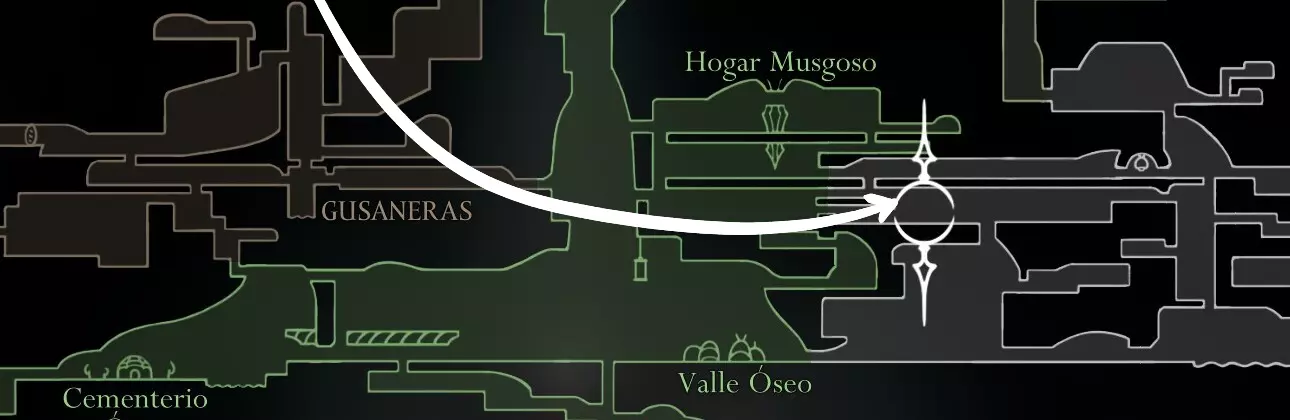 获取方式:位于【蛆虫区域】的一具昆虫尸体上(见下方地图)。 注意,当你试图拾取它时,两侧会有2条蛆虫攻击你。 消耗/需求:无。 携带容量/使用次数:无限。 描述:一位倒下的朝圣者遗留的废弃布袋。 允许携带者在死亡后保留部分念珠。