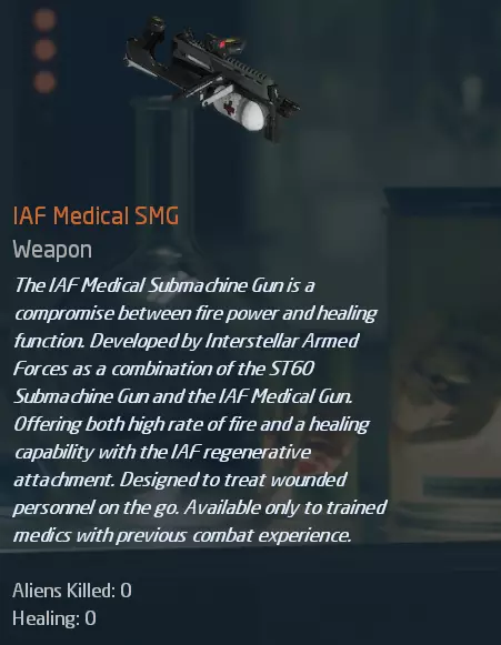 奇怪的电路板组合,似乎并不兼容。看起来这个装置从未被启动过。 借助第一个(物品/装置),你可以选择获得独特武器,还有可绑定“奇怪装置”的备选武器,绑定基于武器的特定属性(特定武器仅支持选择时显示的特定属性),具体形式如下: 1.任务 2.已完成任务 3.击杀的外星人 4.治疗 5.快速破解 6.冻结敌人 7.消灭队友 8.连环杀人 9.治疗入侵 当你使用这个奇怪的装置时,它会获得上述特性,你可以选择任意特性并进行绑定。