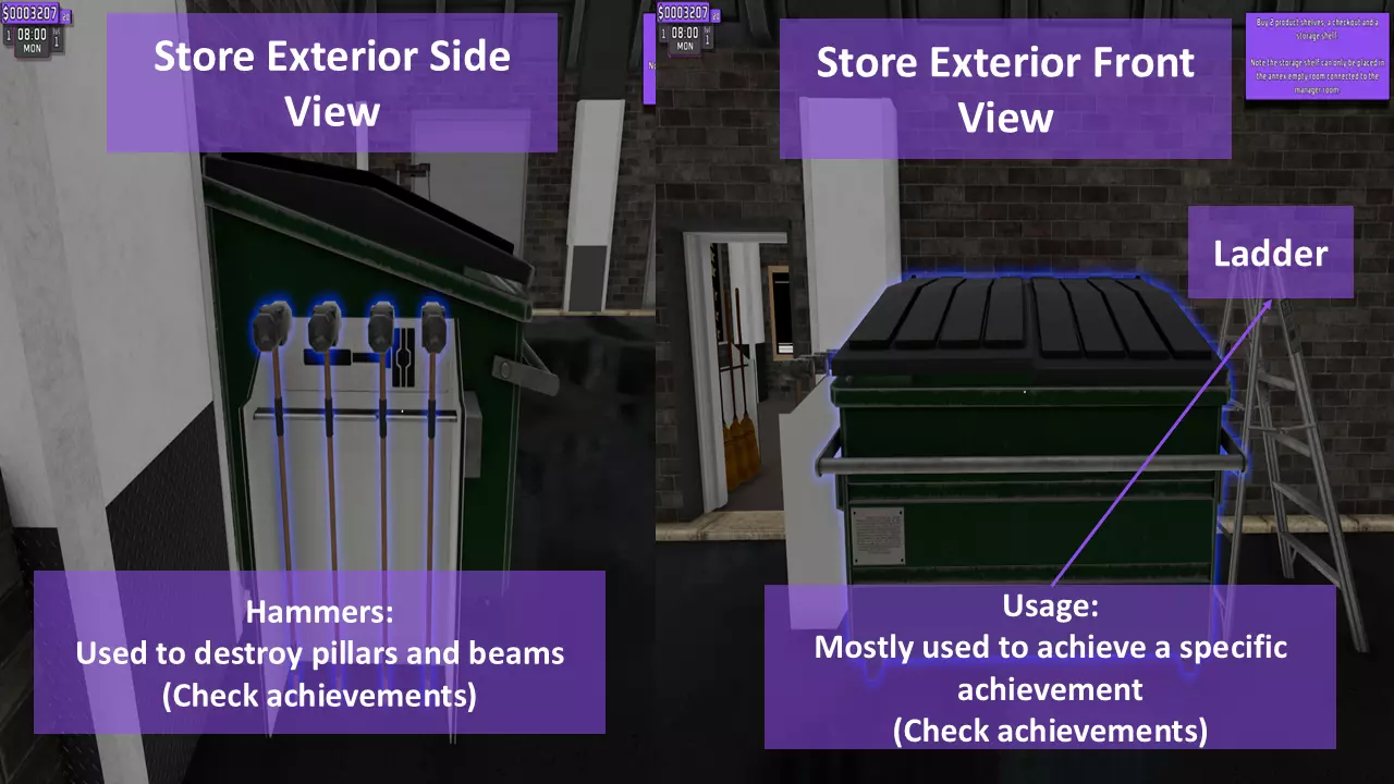 游戏支持真实的发票管理系统,你可以体验支付发票或向银行贷款(不偿还贷款会面对银行人员!)。 8. 其他主要设备 - A(扫帚和工具箱*)