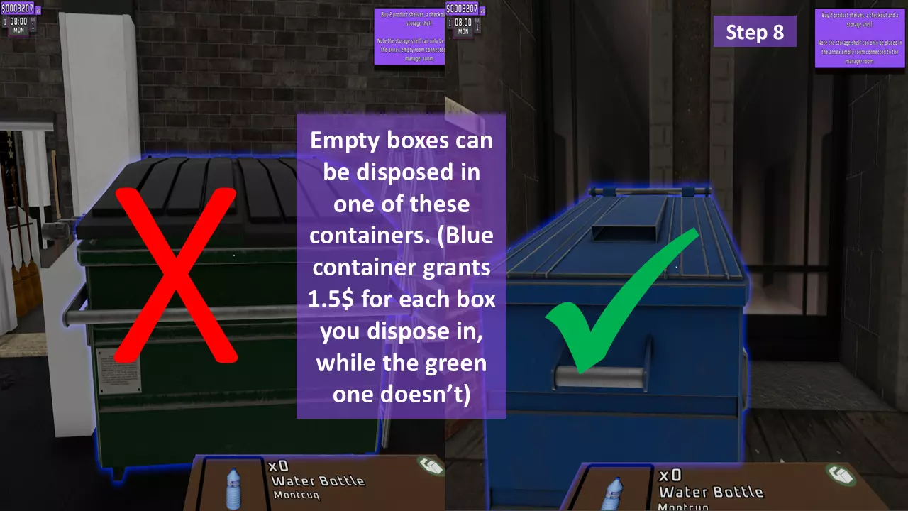 这是你在商店外能找到的东西。(绿色容器是用来扔空盒子的,不要着急,先阅读下一篇文章) 4. 外部 B