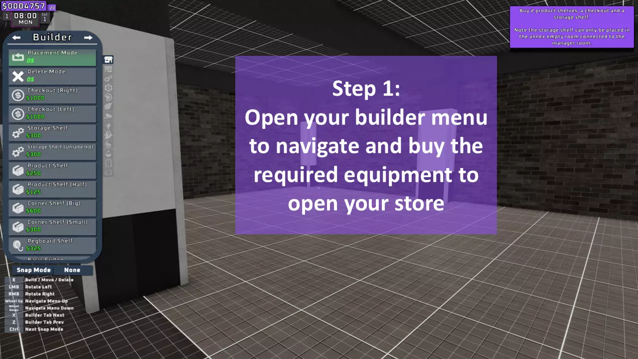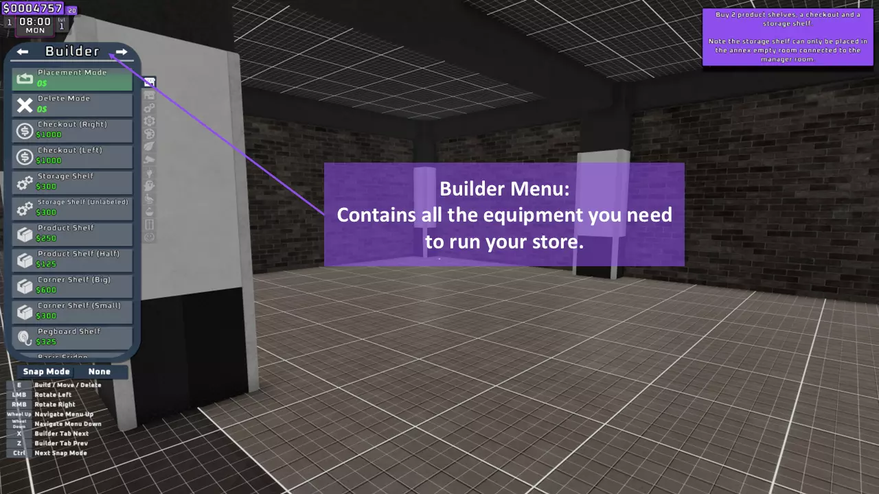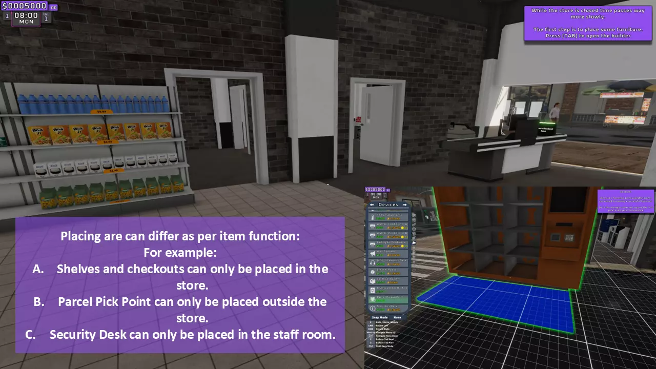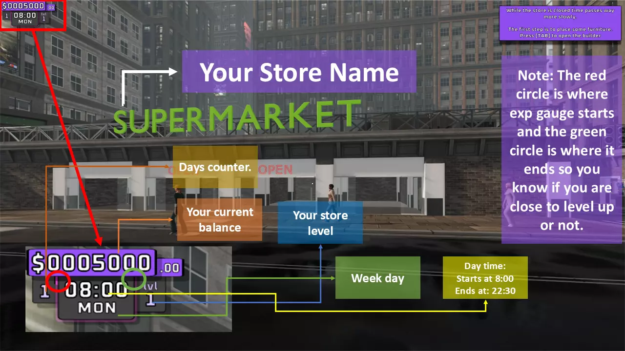 游戏基础信息 本文包含以下内容: - 游戏HUD界面 - 商店内部与外部 - 经理室 - 建造菜单 开始 ------------------------------------------------------------------------------------------------------------------------------------ A. 游戏HUD界面