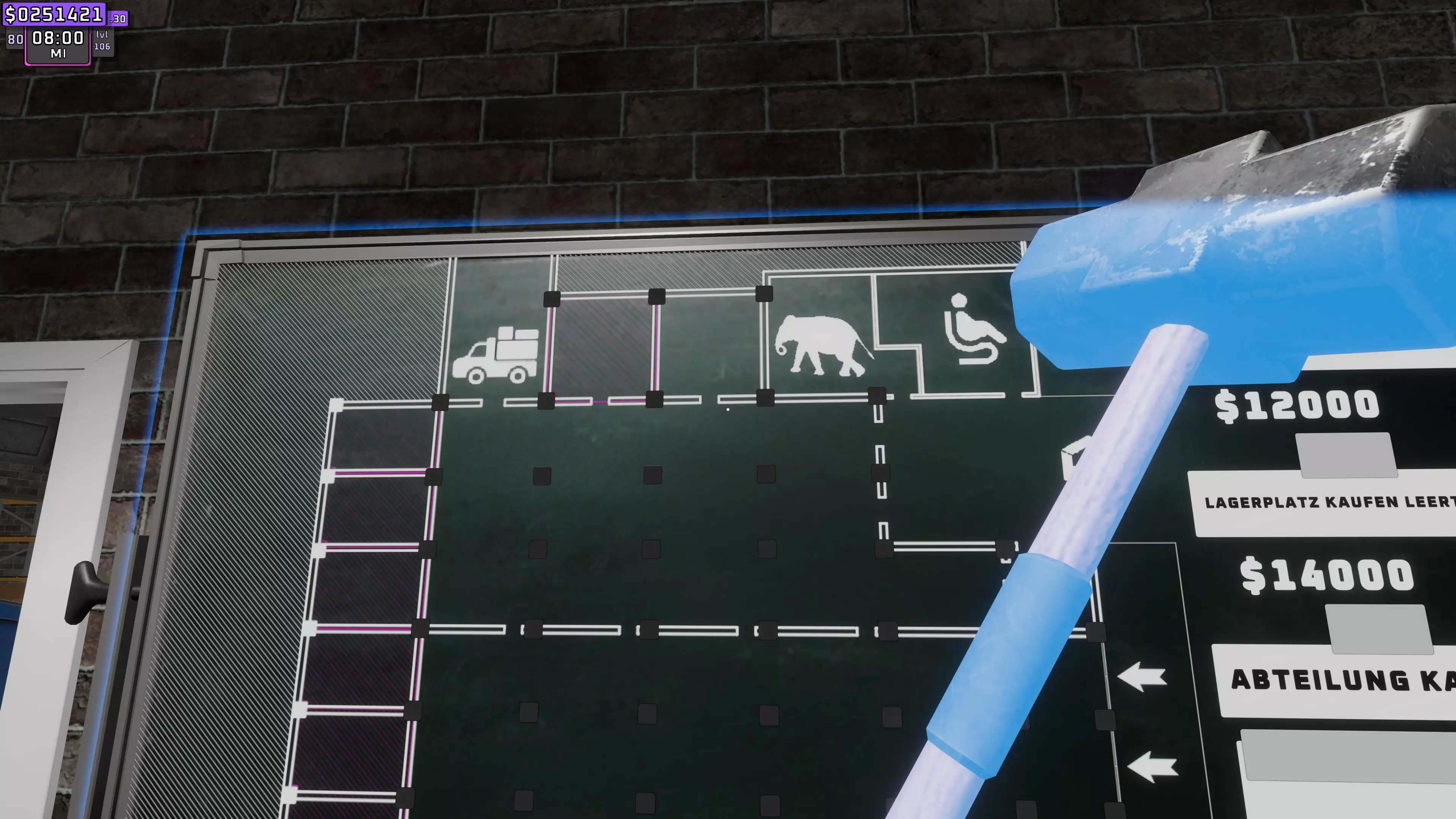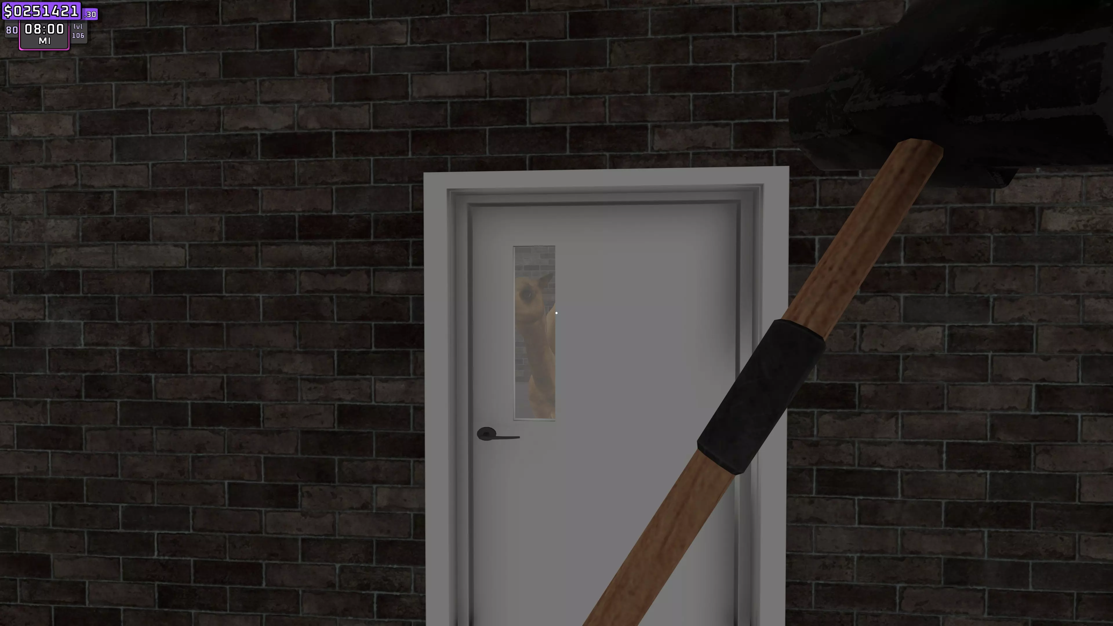 现在你要做的是靠近门左边的墙壁。你必须拿着锤子,因为如果不这样做,之后你就得在里面建造一个收纳架才能拿到它。