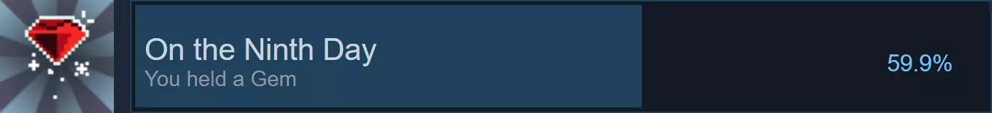 下一个成就是简单的,获取名为【On the Ninth Day】的宝石。你可以通过丢下宝石再捡起来的方式来达成。