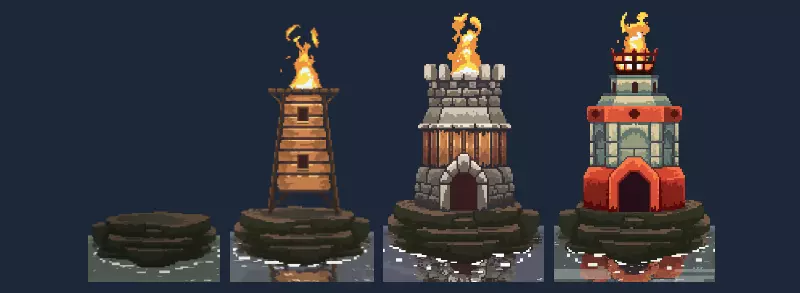 精灵素材取自《王国:两位君主》完全指南(社区协作版)。 【衰败】机制类似于离开岛屿时启动的倒计时。例如,当你从岛屿1启航前往岛屿2时,衰败便会激活。不过,较早的岛屿衰败速度较慢。灯塔对衰败有影响。衰败仅影响城墙和弓箭手。弓箭手仅能维持1天,而城墙根据等级不同,可持续2天到20天不等。其他建筑不会被破坏,因此若已清除该岛屿上的贪婪生物,你可以放心离开。灯塔能增加倒计时天数,其中1级灯塔增加10天,2级增加20天,3级增加30天。
