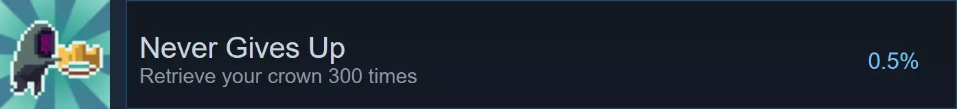 现在摧毁除码头传送门之外的所有传送门。确保背包中没有金币,然后走向传送门。这会让你的皇冠掉落,但由于岛屿已经清理干净,你可以轻松捡回皇冠。重复此操作,直到解锁【Never Gives Up】成就。双人合作进行此操作会大幅加快进度。