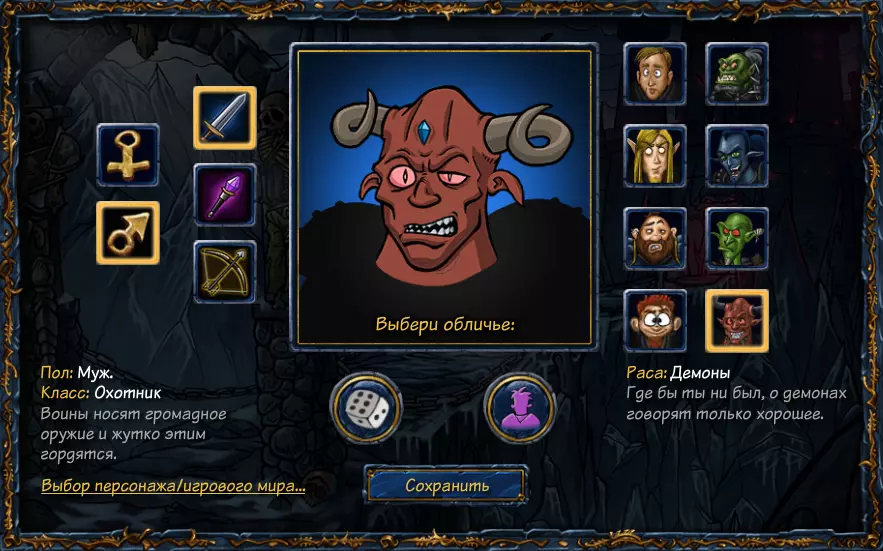 力量(Сила)- 战士的主要属性,影响攻击力。该属性还能提升对战士职业的防御力。 敏捷(Ловкость)- 弓箭手的主要属性,影响攻击力。该属性还能提升对弓箭手职业的防御力。 智力(Ум)- 法师的主要属性,影响攻击力。该属性还能提升对弓箭手职业的防御力。 体质(Выносливость)- 提升生命值的属性。【运气】- 提高造成暴击伤害的几率。 这些参数可以通过穿戴装备、饮用药水(这些都可以在武器和魔法商店购买)、升级勋章(在角色菜单中)以及使用金币提升属性(在角色菜单中)来增加。 当你确定职业和种族后,在竞技场和战斗中要始终将自己的参数与敌人的参数进行比较。 04. 职业与种族目前游戏中共有三个职业和八个种族。以下是职业和种族的属性介绍: --- 职业: 属性 职业: 战士