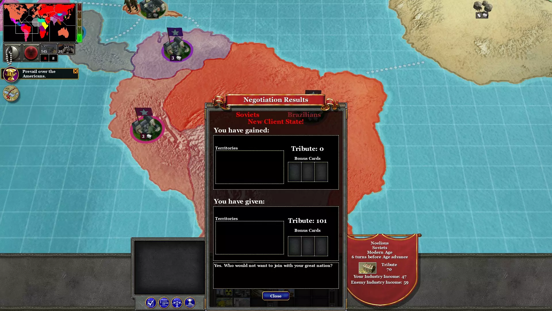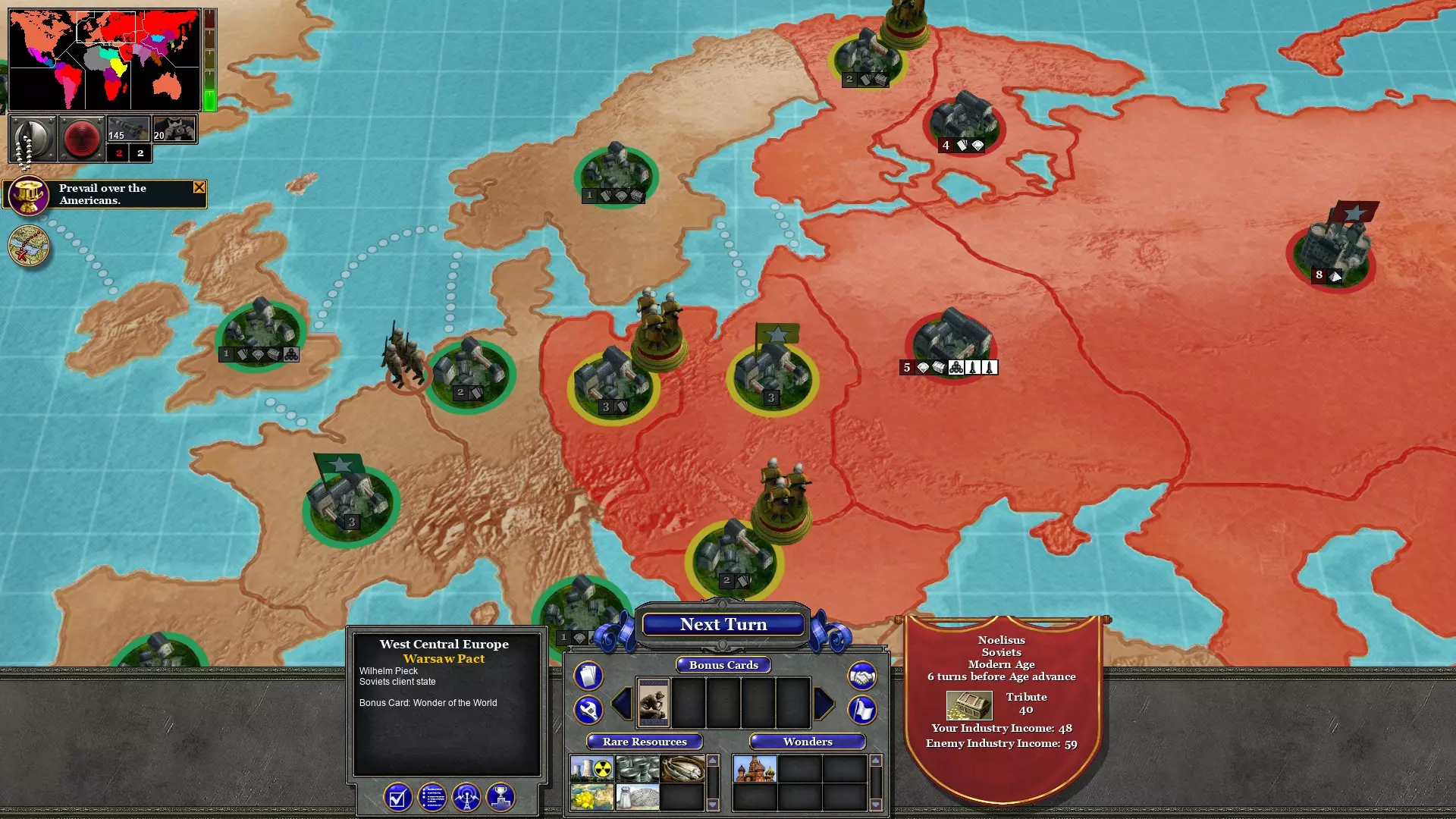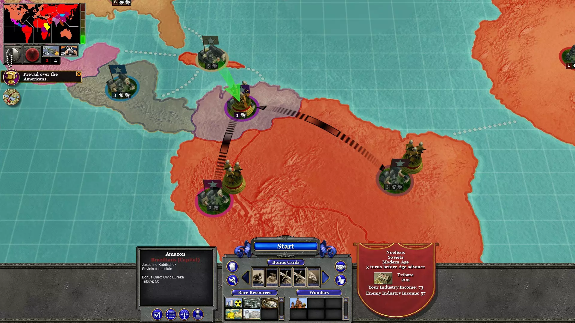 用两支军队占领西非;一支来自巴西,一支来自埃及。这不会消耗回合。这将阻止资本主义猪猡进一步扩张到非洲。