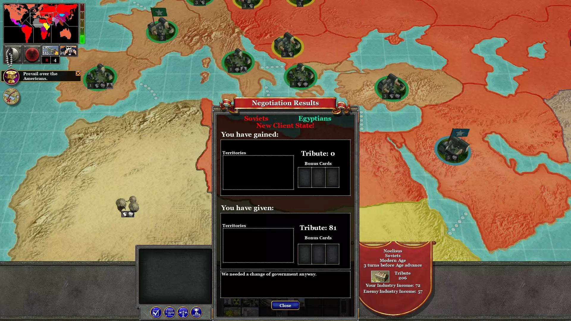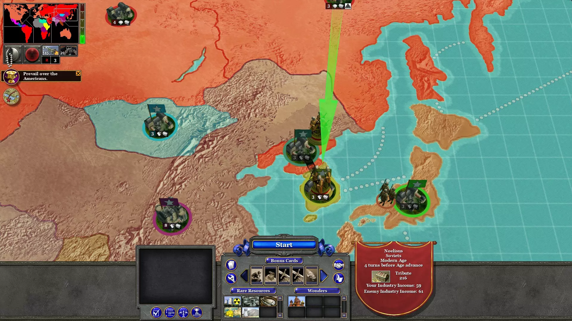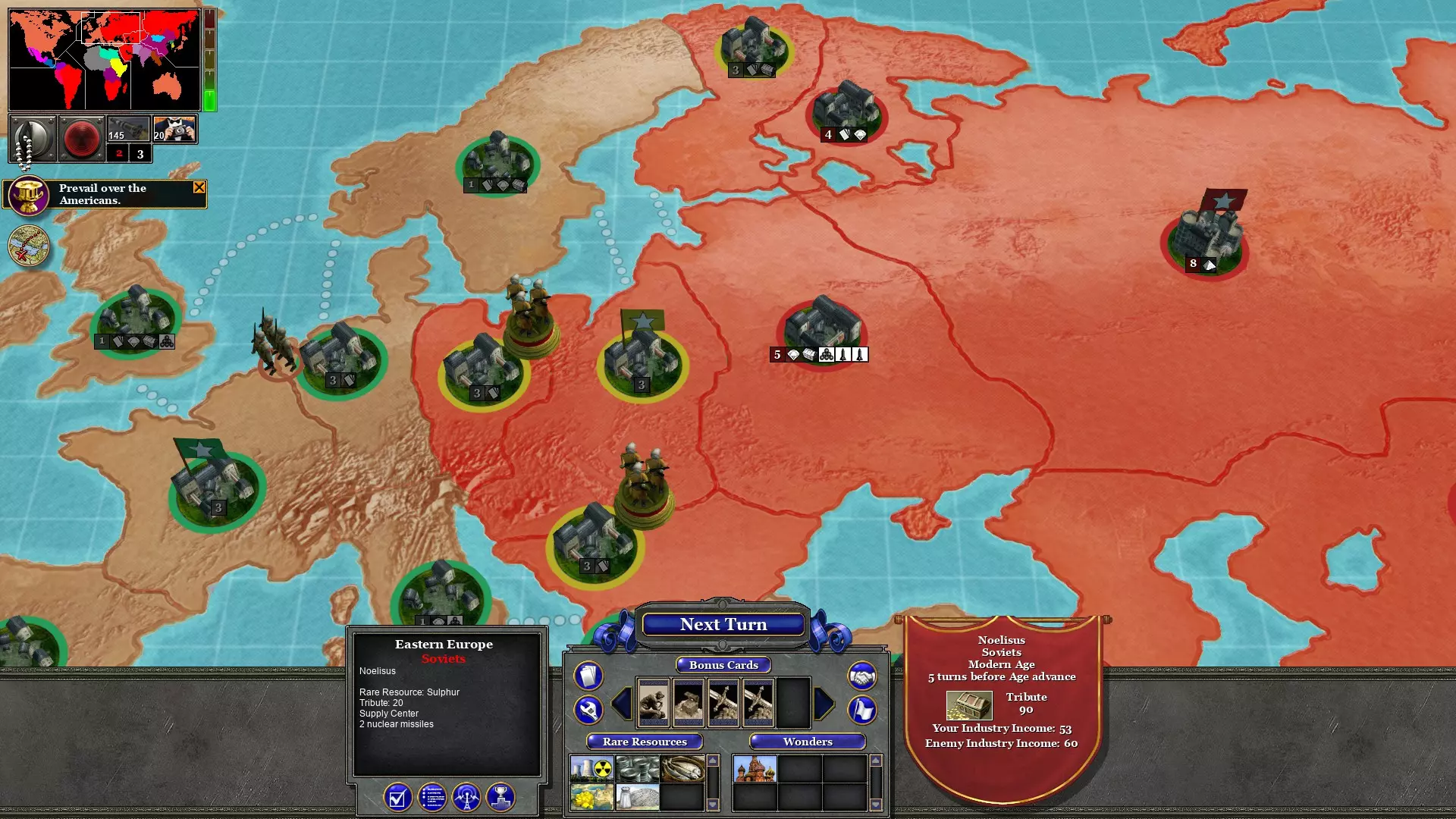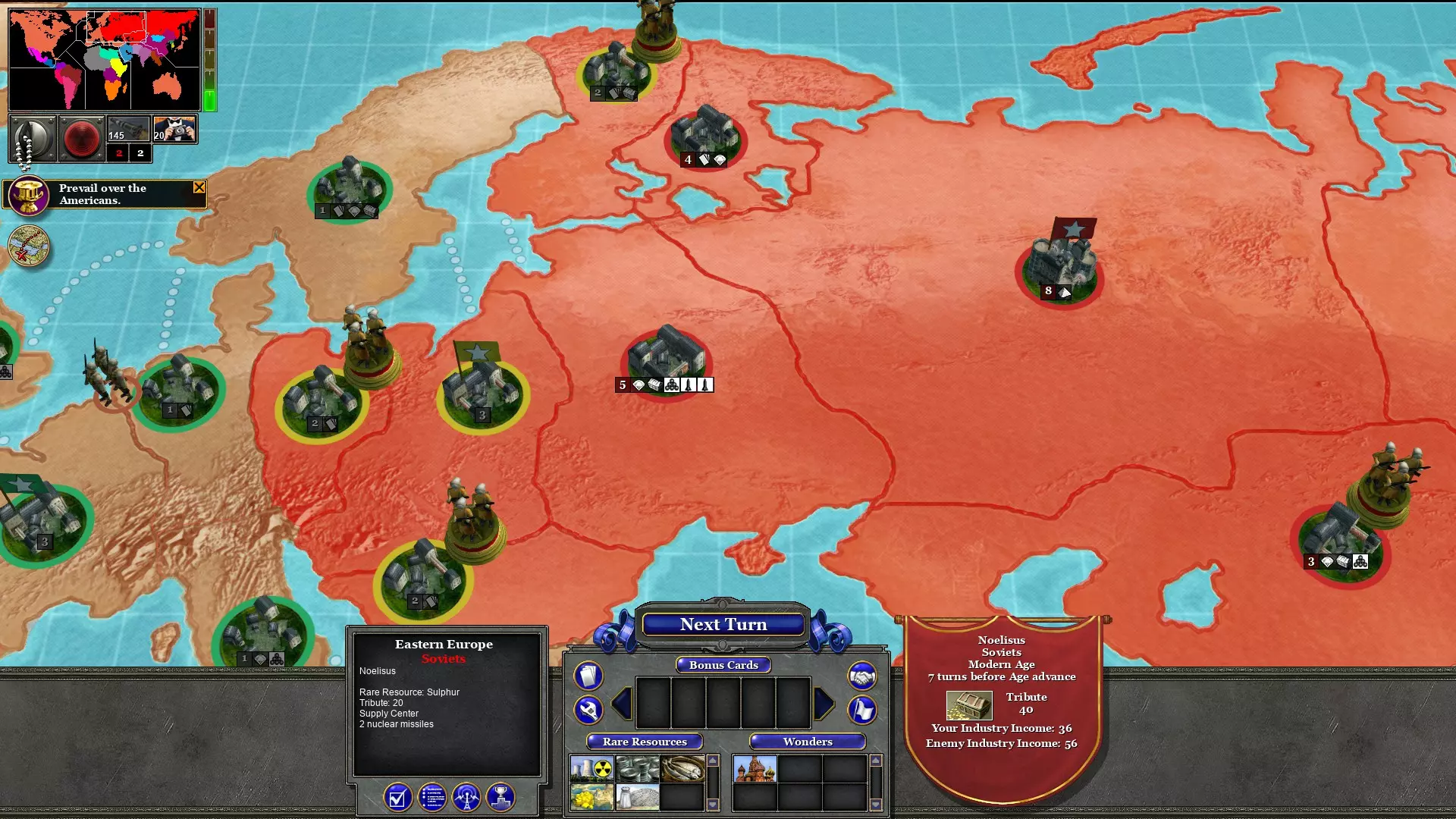 用两支军队占领西非;一支来自巴西,一支来自埃及。这不会消耗回合。这将阻止资本主义猪猡进一步扩张到非洲。