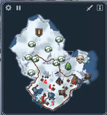 主要任务:从矿场收集70份钢铁,建造铁匠铺,锻造出剑并击败冰霜巨兽。 额外任务:在第四年结束前击败冰霜巨兽——这里可能存在错误。或许是需要在第四年之前收集70份钢铁,或者在第四年结束前击败(冰霜巨兽)。我在第三年11月左右收集到了钢铁,在第四年2月前打造出了剑,并在第四年3-4月击败了(冰霜巨兽),随后解锁了成就。提前击败10种不同类型的冰霜巨兽——为此,当你已在铁匠铺锻造出剑时,建造战士、斧兵和持盾兵的营地,各创建一个单位,然后在剑准备好后,让它们与布里戈尔德和熊一同发起攻击。 同时从4个矿场开采永恒钢铁——这应该会自动完成。在所有可能的区域建造矿场,并在每个区域至少开采一个矿石。一旦发现冰霜巨兽,立即带领矿工撤离该区域,并转移到有矿场的其他区域。 重要区域 1 - 3只狼 2 - 4只狼、智慧之石、鱼、35块石头 3 - 3只狼、熊、鱼、智慧之环 4 - 狼穴、通往不灭钢的通道区域 5 - 4只亡灵战士、鱼、48块石头 通关建议 我们在这个任务中的策略是借助石头环和智慧之石快速获取鱼叉和锻造锤。因此,一旦开始,我们就建造一个侦察兵和一座房屋,不再建造其他东西。侦察并占领1、2、3号区域。派遣三名智者去获取传承。冬季来临前,建造锯木厂和两座渔夫小屋。在传承中选择降低殖民成本、冬眠和鱼叉。冬季期间侦察4、5号区域。继续研究直到获得铸币技术,然后召回智者。同时不要忘记增加人口,建造酿酒厂、贸易站和第三个渔民营地。开始开采石头和黄金,借助祝福升级矿工和渔民。我们不需要所有的石头,只需用于升级主要建筑。一旦你的食物产量达到+20或更高,且食物储备超过300单位,立即殖民所有有钢铁的区域,并在每个区域建造矿场。当冰霜巨人进入你的区域时,将所有人转移到相邻区域,并继续从尽可能多的矿场开采资源。一旦冰霜巨人离开,立即重新殖民该区域并修复矿场。完成钢铁开采后,建造铁匠铺(也可以在开采即将结束时建造),锻造剑并击杀怪物。不要忘记每种类型各建造一个单位以完成成就。 第十章 - 芬布尔之冬