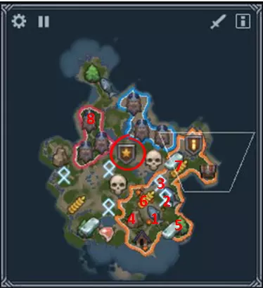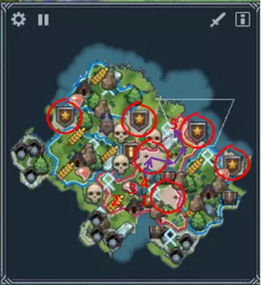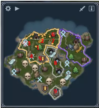 主要任务: 收集2000声望,赶在莉芙之前完成;或者抵达敌方堡垒区域——在此任务中,通过军事途径取得胜利比贸易途径更容易。 额外任务: 迫使沃龙家族投降——只需抵达敌方堡垒区域,无需占领。此途径比贸易胜利还要简单。在1个月内同时与所有中立种族进行交易——需要在1个月内持续与莉芙族、约顿族和哥布林族进行交易,可在进行主线任务的同时完成。 同时拥有12名活跃商人和6名航海者——这是一个更复杂的任务。总共需要18人来开采黄金。为此,需要建造3个码头(或2个升级版码头),以及6个贸易站和市场。拥有三个贸易站对于金币收入来说非常不错,即使不做这个任务也是如此,而其他的建筑则需要额外建造(不用担心,获得成就后可以将它们拆除)。我建议在进攻利夫之前,先建造足够数量的建筑来容纳所需的商人和水手,并暂时停止伐木工、酿酒师和农民的生产。一旦听到标志性的声音,这意味着成就已完成,要立即让所有人回到各自的位置,并拆除不需要的建筑。重要区域 1 - 3只狼和森林 2 - 3只狼和小麦 3 - 3只狼、鹿、30块石头以及1个智者之石 4 - 2只狼、1头熊、35块石头以及2个智者之环 6、7 - 带有龙穴7和三座龙像神庙遗迹6的后续扩张区域 8 - 必须占领的哥布林区域,以便通往利夫 9 - 巨人区域 通关建议 本任务初期流程标准:占领森林1以及食物区域2、3,发展至16人口占领4号区域,收集矿石并完成升级后,继续发展,组建至少4个斧头兵的军队。用这支军队占领有女武神的5号地热区,顺便还能获得两只羊。侦查完约顿人后,开始用食物与他们进行交易。接着殖民6号和7号区域,建造至少3个贸易站,并通过与所有势力进行为期1个月的贸易来完成贸易成就。完成这个成就后,开始积累资源以达成航海和商人相关的成就。不要忘记,在氏族中,只需花费20金币就能提升区域内的建筑数量上限,这在你已经建造满沿海区域且无处建造码头时非常有用。同时,保留5块石头用于升级侦察兵,以便能够到达利夫地区。如果你没有留下石头,也不要担心,万不得已的话可以殖民你【5号地热井】西南方向的区域,那里有狼穴可以获取石头。 我开始这个任务时完全没有士兵,依靠【哈尔瓦德】清理初始区域,并让他的萨满进行治疗。前4把斧头是我在占领女武神区域时建造的。至于【利夫】,我是带着7把斧头和哈尔瓦德去进攻的,这就足够了。如果觉得困难,可以等约顿人给你派战士,然后再带着战士进攻。我当时给莉芙配了大约10名战士,还有她自己。 第五章 - 惩罚性远征