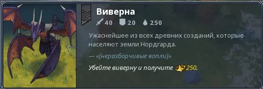 主要任务:击败博格希尔德,比她先积累1500声望,或者消灭区域内所有带有要塞的单位(必须是消灭,而非占领,因为即使那里还剩下塔楼,游戏也会判定胜利)。 额外任务:消灭所有双足飞龙。地图上8号和9号区域有两只双足飞龙,其属性如下方图片所示。我使用巨人英雄利夫、7个斧头兵和4个持盾兵消灭了双足飞龙。第一次没有损失,第二次死了3个持盾兵。击杀他们每个可获得250声望,如果你打不过的话,这可是个不错的提升方式。