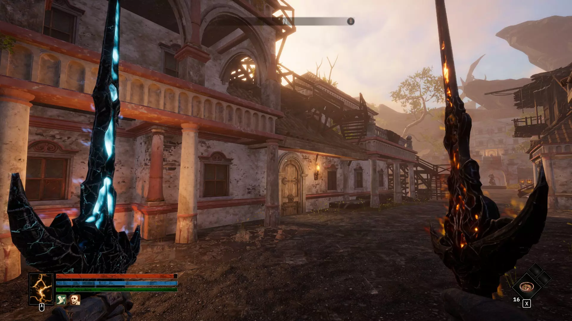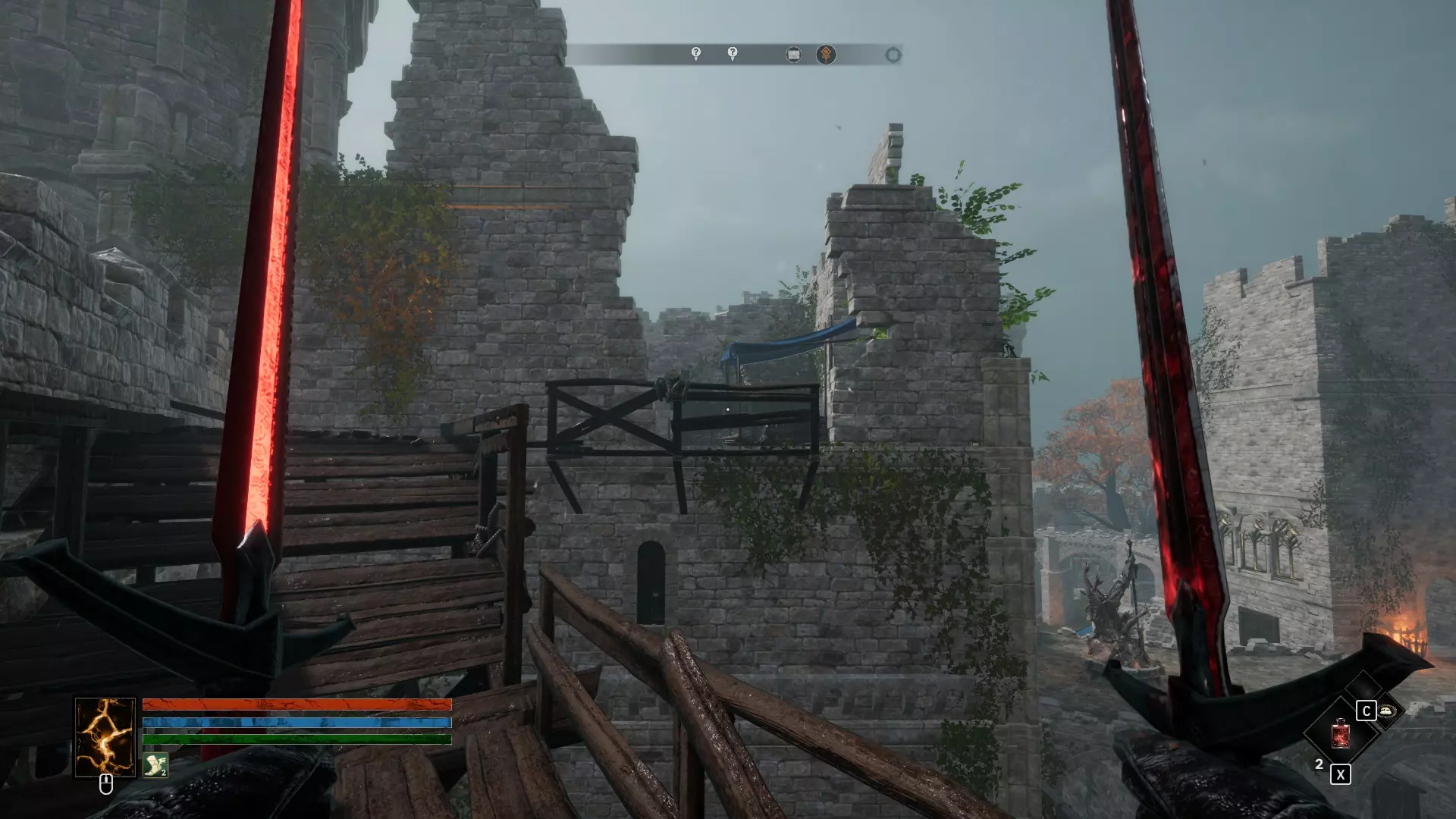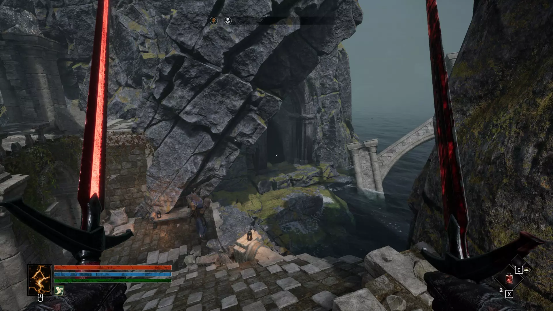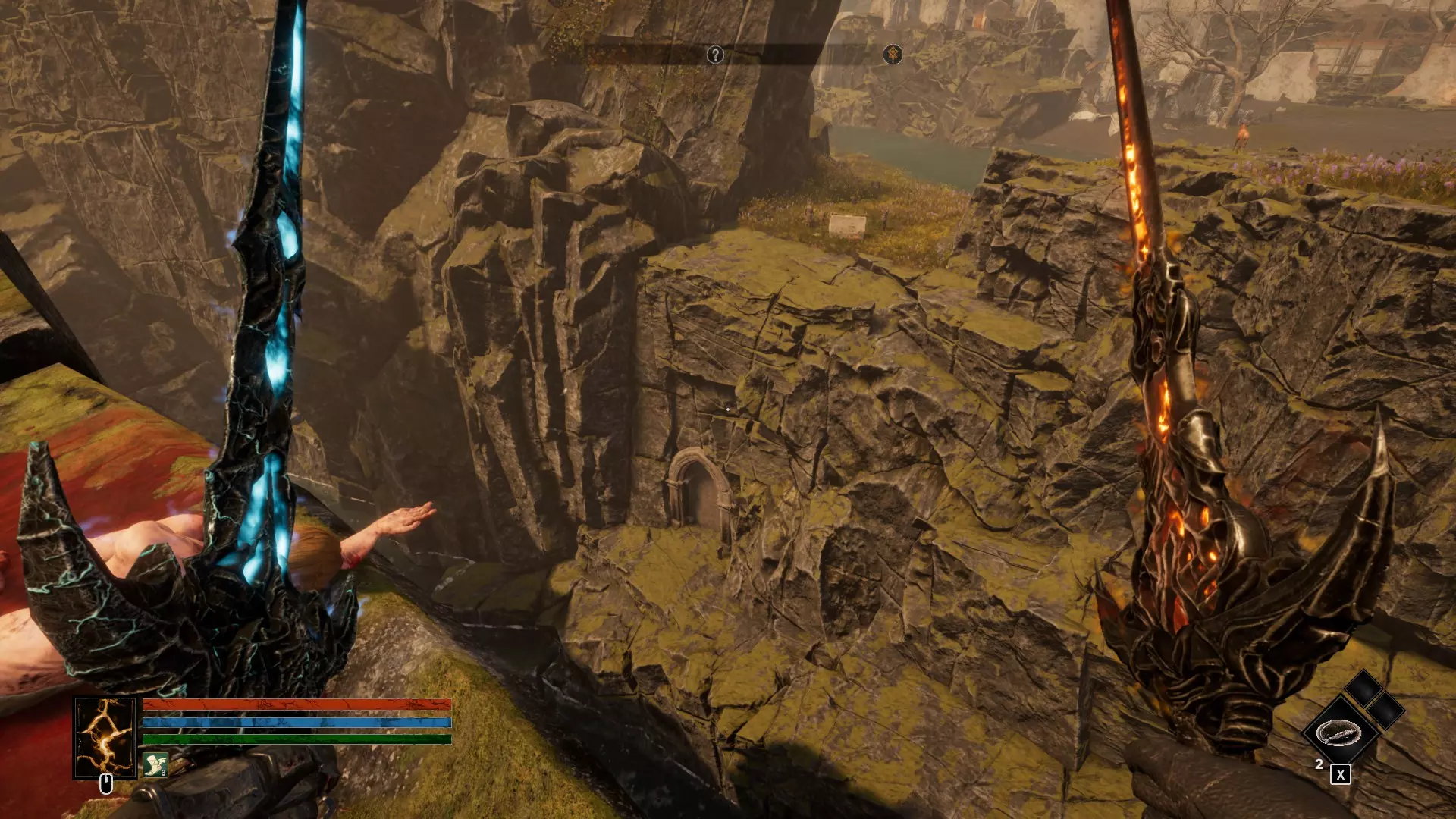 3 - 简单剧情提示 这里更像是将两个剧情点合并了。如果说上次可以直接备些绷带,然后靠自己的小跟班们取出圣物,那么这次则需要找到两块石板碎片。我在推进剧情前就找到了这些地点,不确定它们是否会在剧情中显示,但为了方便起见还是加上了。 另外需要注意的是,在3.2地点可以通过你的选择获得成就。觐见国王前会有一个小房间,你必须经过那里,并且会有蘑菇和你对话……同意让国王感染蘑菇。一定要注意,在击败 Boss 后不要杀死国王,而是让他感染,这样你就能获得成就。菌丝必须生长。 另外,3.2 区域桥下的小怪物没必要杀。浪费时间和箭矢,只能获得 40 点经验。没错,我试过了。 同时,感谢 Persyval,在 3.2 区域。1. 收集所有找到的求助修女笔记。之后可以将它们放到圣母雕像的祭坛上,以此获得另一个真正的【全物质】神器(可复活一次,破碎后永久增加35点最大生命值),并且每收集一张笔记还能增加1点及以上的最大生命值。 4. 再次出现闪回 这是另一个用于达成某一结局的隐藏地点,与上一幕中的隐藏地点类似。该内容也需要获取遗物后才能开启。我在地图上用箭头标记了自己前往的路线:沿着倾斜的岩石爬到断桥残骸处,然后继续跳跃前进。