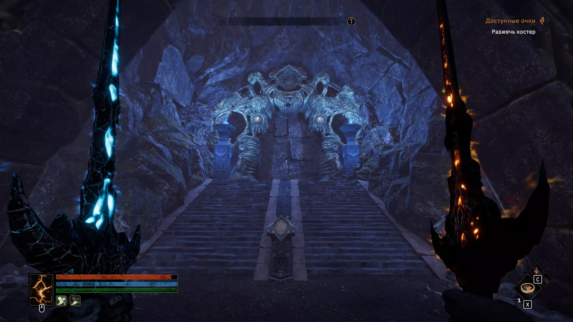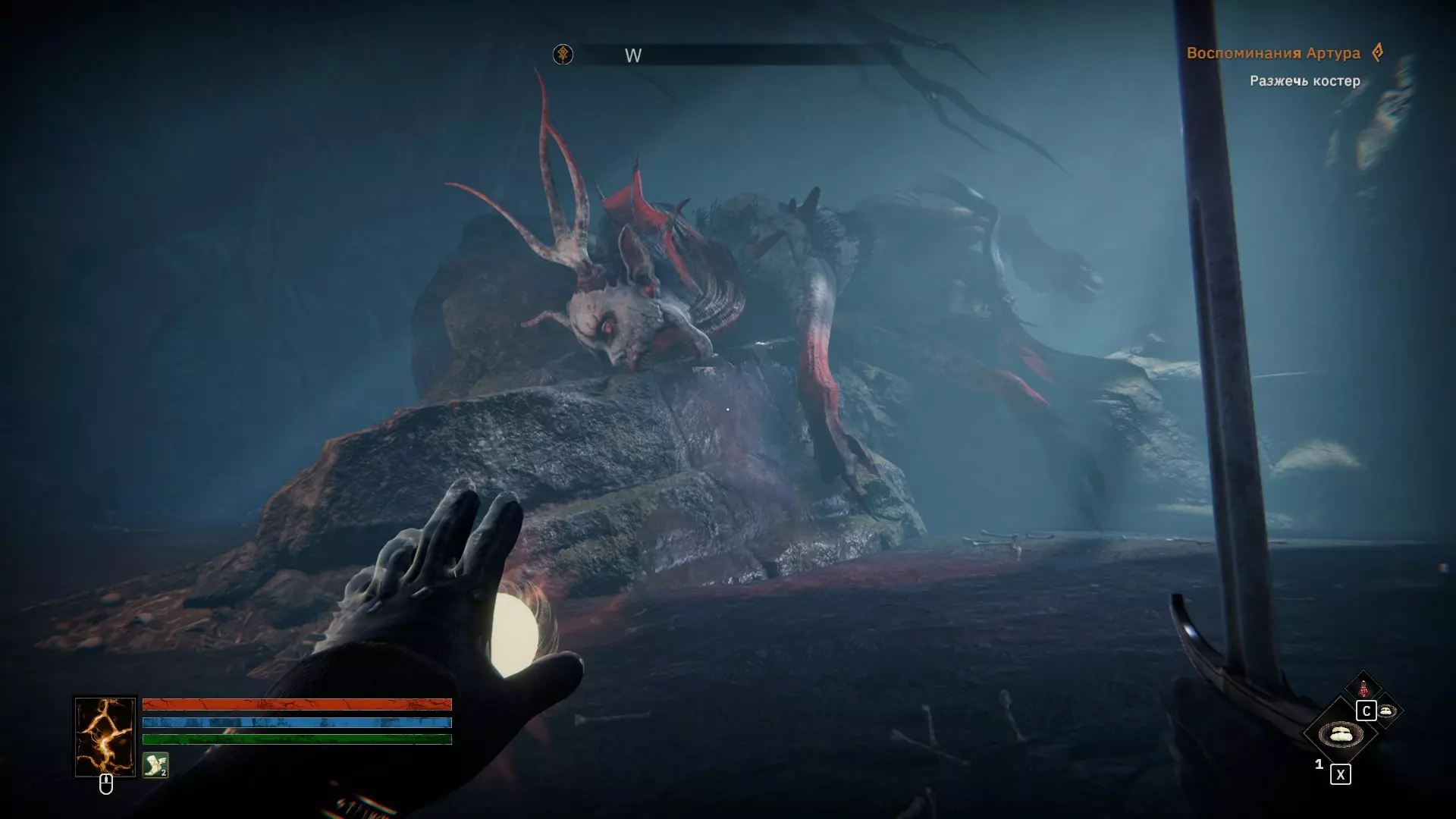 3 - 现在来说说有趣的部分 这或许是该地点最重要的一处。根据我的推测(之后也得到了Persyval的证实),这个地点是通往真结局的通道,只有在收集齐所有3个圣物并造访全部5个骑士坟墓后才会开启。别忘了利用这一点。 位于编织人后面