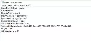 再找到DDrawCompat.ini文件,打开,找到: SupportedResolutions = 640x400, 640x480, 800x600, 1024x768 在这一行后面加上你想要的分辨率 例如:SupportedResolutions = 640x400, 640x480, 800x600, 1024x768, 1920x1080