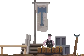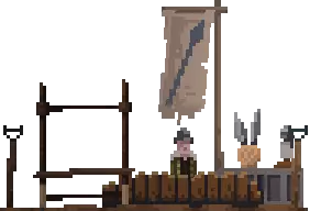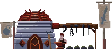 火堆的左边是锤子店。 锤子单价:3金币;商店最多可以存储4把锤子。 平民可以拿上锤子成为工人。 弓箭店