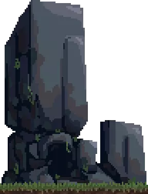 左侧为传送门废墟,是摧毁传送门或港口传送门后留下的遗迹。 解锁石头科技后,可在废墟处花费8金币建造传送门,建造时会派遣2名工人前往施工。 花费2金币可使用传送门进行传送。使用后将获得15秒的选择时间,按住【左】或【右】方向键移动视角选择目的地,按【下】方向键确认传送(只要能看到的位置即可传送)。 若传送到足够大的空地,会在脚下生成一个配对的额外传送门废墟,但该废墟会在30秒后消失。在消失前,在该废墟处花费8金币可建造永久绑定的传送门。此后,在其中一个传送门处花费2金币即可传送到绑定的另一个传送门,且传送无冷却时间。 洞穴