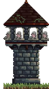 价格:12金币 科技:石材 在3级的基础上增加一个更高的射击位,拥有更强大的火力,但目前仍容易被幽浮袭击。 5级 - 三人带盖箭塔