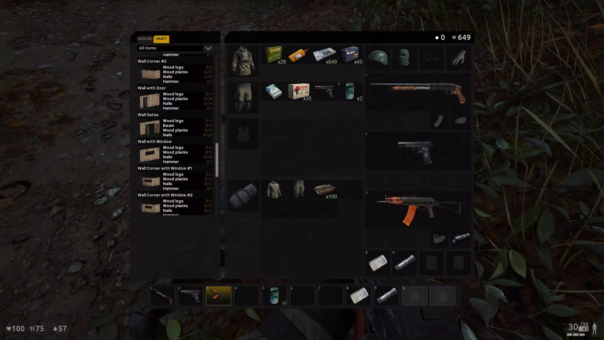 【安全区】 - 地图上以绿色标记显示。 - 内有商店和带有限 slots 的仓库,可用于花费任务所得货币及储存物品。 - 进入安全区后生命值不会减少。 - 可以将身上的特定物品和武器出售换取货币。 - 存在名为身份牌(Dogtag)的徽章类物品,在安全区出售可获得15点积分,使用该积分可在死亡后于死亡地点附近复活。【支持者包】可以为您的安全区储物柜增加18个槽位(我认为这是一个用于支持厂商而推出的DLC)。 武器和物品 - 将鼠标悬停在武器上时,可以查看其使用的弹药类型。 - 初始阶段可以使用Scorp(乌兹冲锋枪),从使用舒适度来说非常不错。*武器配件可以在地图中找到,也可以在安全区购买。 *可以通过分解衣物获得破布,再使用伏特加、医用酒精、私酿酒等材料制作消毒破布。 *可以在安全区购买绷带使用,这是治疗效果最强的道具。 *普通破布可恢复5点生命值,消毒破布可恢复15点,绷带可恢复20点。 *使用锯子可以将斧头砍伐的原木(木材)制作成木板。 *通过收音机可以听到游戏中周围机器人的声音,从而判断它们是否正在向你靠近。 *屏幕左下角的HUD会显示你的饥饿和口渴等级,可以通过地图获取或购买罐头食品和汽水来补充。*关于衬衫和裤子,初始生成时你会穿着无衬衫的2格裤子,你可以在周围找到4格裤子或其他衣物(提示:将鼠标悬停在衣物上可以查看其格数)。 *头盔提供的护甲值从低到高排序为:安全帽 < 摩托头盔 < 战术头盔 < 突击头盔 < 重型突击头盔。 *生成时不会获得背包,你需要使用绳子和破布制作行李袋,这能增加少量格子。背包的格数从少到多排序为:行李袋 < 突击背包 < 台风背包 < 潜行者背包。您可以通过在周围寻找或购买来获得背心尺寸和插槽,插槽数量的对比情况如下。猎人背心>突击背心>警用背心>战术背心>野外背心>猎人背心 武器配件市场价格(左侧为买入价,右侧为卖出价) 小型武器手电筒 2500美元 500美元(武器手电筒) 大型武器手电筒 5000美元 1000美元(大型武器手电筒) MP133弹匣扩展器 5000美元 1000美元(弹匣扩展器) 准直式瞄准镜 15000美元 3000美元(红点瞄准镜) 全息瞄准镜 15000美元 3000美元(全息瞄准镜) 红点瞄准镜 20000美元 4000美元(红点瞄准镜) ------------------------------------------------- ------------------------------------------------------------------------------------------------------------------------------------ 【建筑】你可以在物品栏的制作界面制作领地声明道具来划定自己的区域,然后通过建造地基、墙壁和箱子来建造你的家。 目前建造的家还没有防突袭功能,但请放心,这个功能未来会加入,毕竟游戏现在还处于抢先体验阶段。(2020年5月28日)