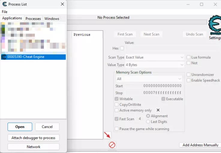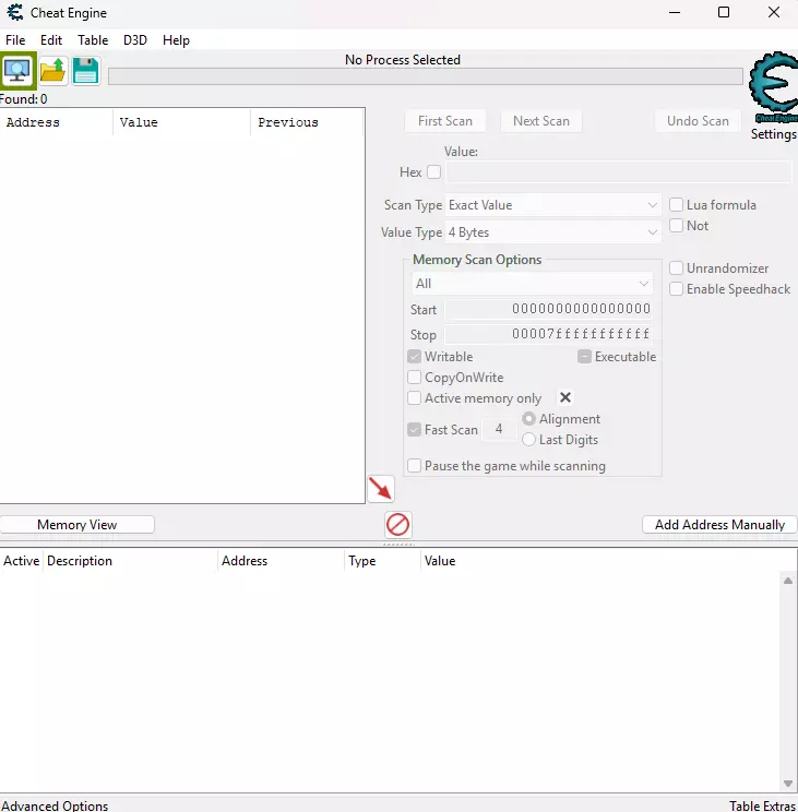 为了让游戏以最高速度运行,我们需要一个额外程序。Cheat Engine是一款可以修改游戏内任意参数的程序,常见的修改项包括最大生命值、最大伤害、无限护甲、最大金钱数量以及移动速度。该程序还允许为游戏创建名为“修改器”(Trainers)的独立程序。由于不愿对可能导致数据被盗的恶意程序下载承担责任,因此本指南不提供该程序的下载链接。所有责任由本指南的读者自行承担。 如何使用该程序? 这是一份非常简单的游戏程序使用指南。 1.首先,打开程序。