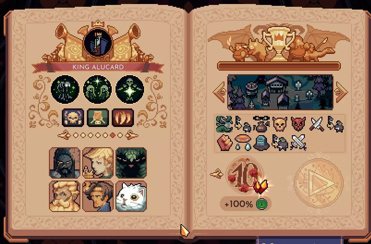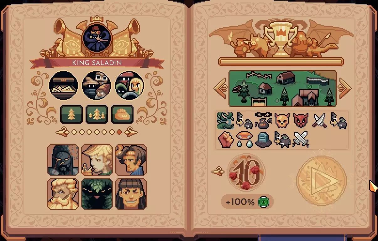 眉毛王 战场上的总单位生命值是关键。 归根结底,初期阶段狂战士、暗杀者、猎人这三种单位比较强势。 第二阶段的BOSS龙狩猎战有点棘手,但只要留意再生能力,还是能设法应对的。 最后靠独角兽收尾。 萨拉丁别名抽卡王 随机设计图搭配随机单位 总之抽卡要素很高,所以意外地波动很大 这是一款上限提升要素相对较多的游戏,但也会出现连续运气不佳或突然失败的情况。 经常会有盯着选择界面陷入绝望的机会,情绪就像坐过山车一样。 如果不稳健选择顾问,而是靠贝蒂·怀斯技能树通关的话,那就很厉害了。尚未用萨拉丁通关威胁等级10的贝蒂·怀斯树。阿尔卡德