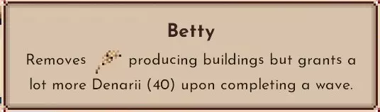 笑容很可爱,但内容可不怎么可爱。 小麦的生产格子不再出现。取而代之的是每波能获得+40红硬币。 和弗兰克一起使用的话会变成+50。 前期如果小麦不能在交易中出现就会陷入困境。 如果不能增强其他资源也会陷入困境。 水是可以制造的,所以如果抽不到骨坑或南瓜就会陷入困境。 不过能在交易中尽情挥霍,让人头脑发昏。 和智慧树一起使用会是很有趣的顾问。 这也是成就的目标,一定要试试看。 可以在威胁度10的蘑菇智慧树贝蒂三星难度下惨叫着游玩哦。 魔像