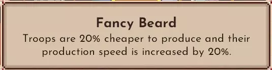 部队训练效果增加10%。 获得哑铃后,效果增加25%。 疯狂之人、刺客与1点生命值训练组合可使生命值增加75%。 各兵种强化每次增加25%,因此只需4次训练即可达到100%的强化效果。 原本每次只能提升15%,两者差异巨大。 相比获得士气,这种方式效率要高得多,若想强化单位,建议采用。 胡子大叔