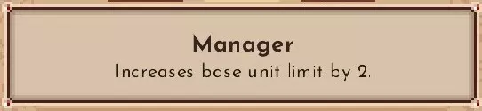 作为初始单位,会配置2名火绳枪兵。 所有国王必备的顾问。 无烬火状态下游玩难度10非常非常困难,或许可以在解锁成就后作为余兴尝试。 【经理】