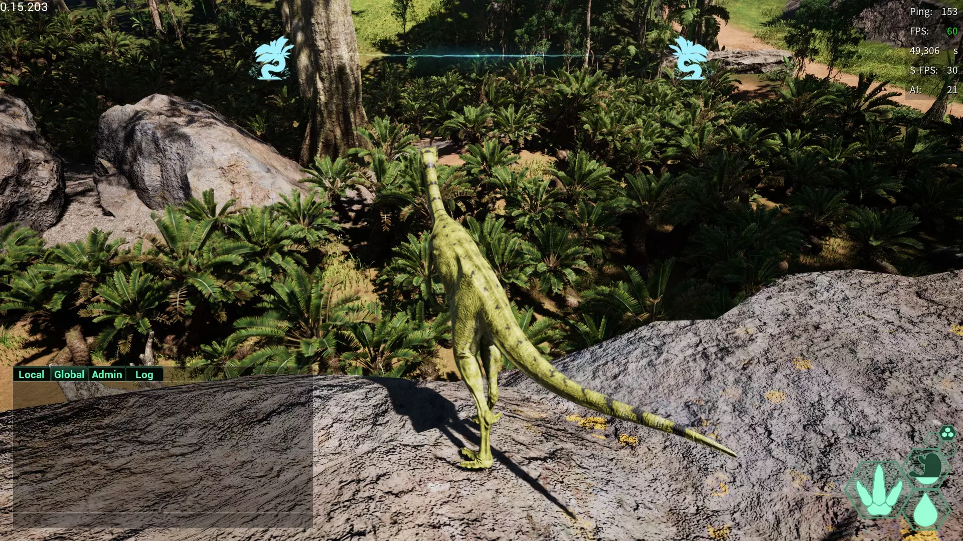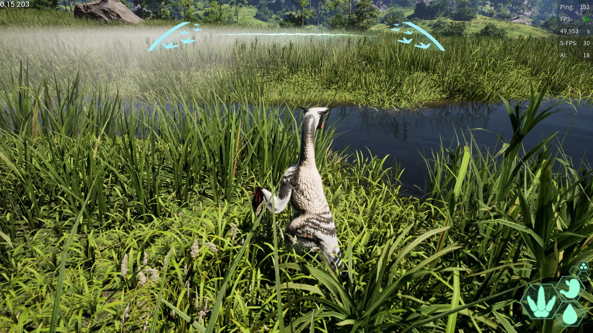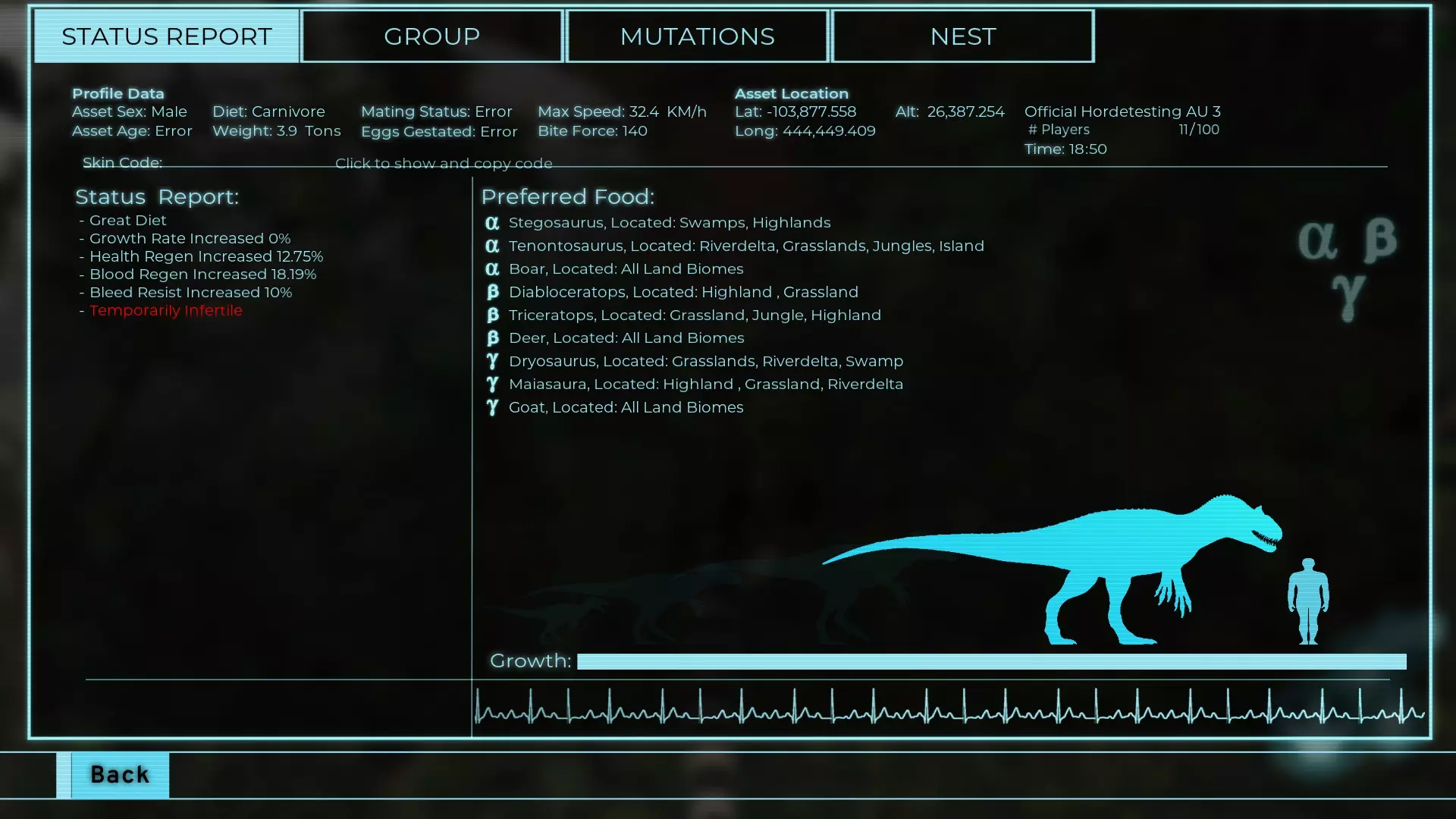 α→成长速度上升、耐力消耗减少及恢复速度上升 β→成长速度上升、体力及出血恢复速度提升 γ→成长速度上升、骨折耐性及嗅觉范围增加 10:AI生物 在地图各处生成的CPU。 基本上玩家靠近就会逃跑,但部分种类会发起攻击 1:鹿 栖息于地图全域,会反击幼体恐龙