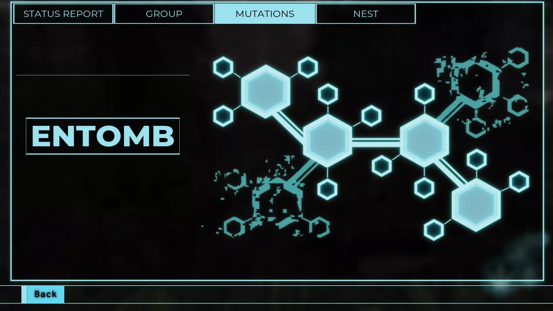初始设置下可通过按下Tab键打开。用于确认状态、选择变异、管理队伍和巢穴等多种操作。8:长老系统