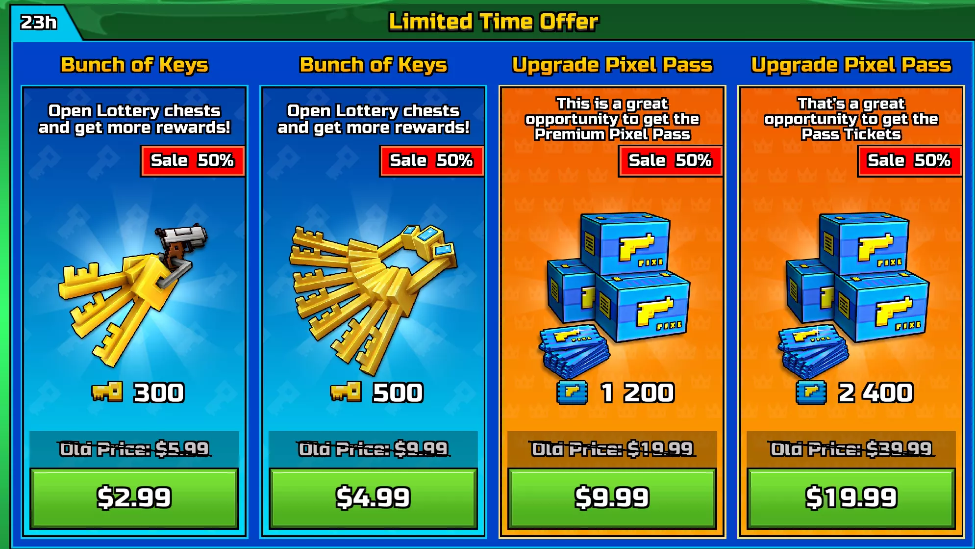 如果你需要杀伤力强的武器,那你得去看看【抽奖】和【像素通行证】。我个人喜欢用那种兼顾各方面的武器。事实上,我非常喜欢一把武器,甚至搞到了两把一模一样的!