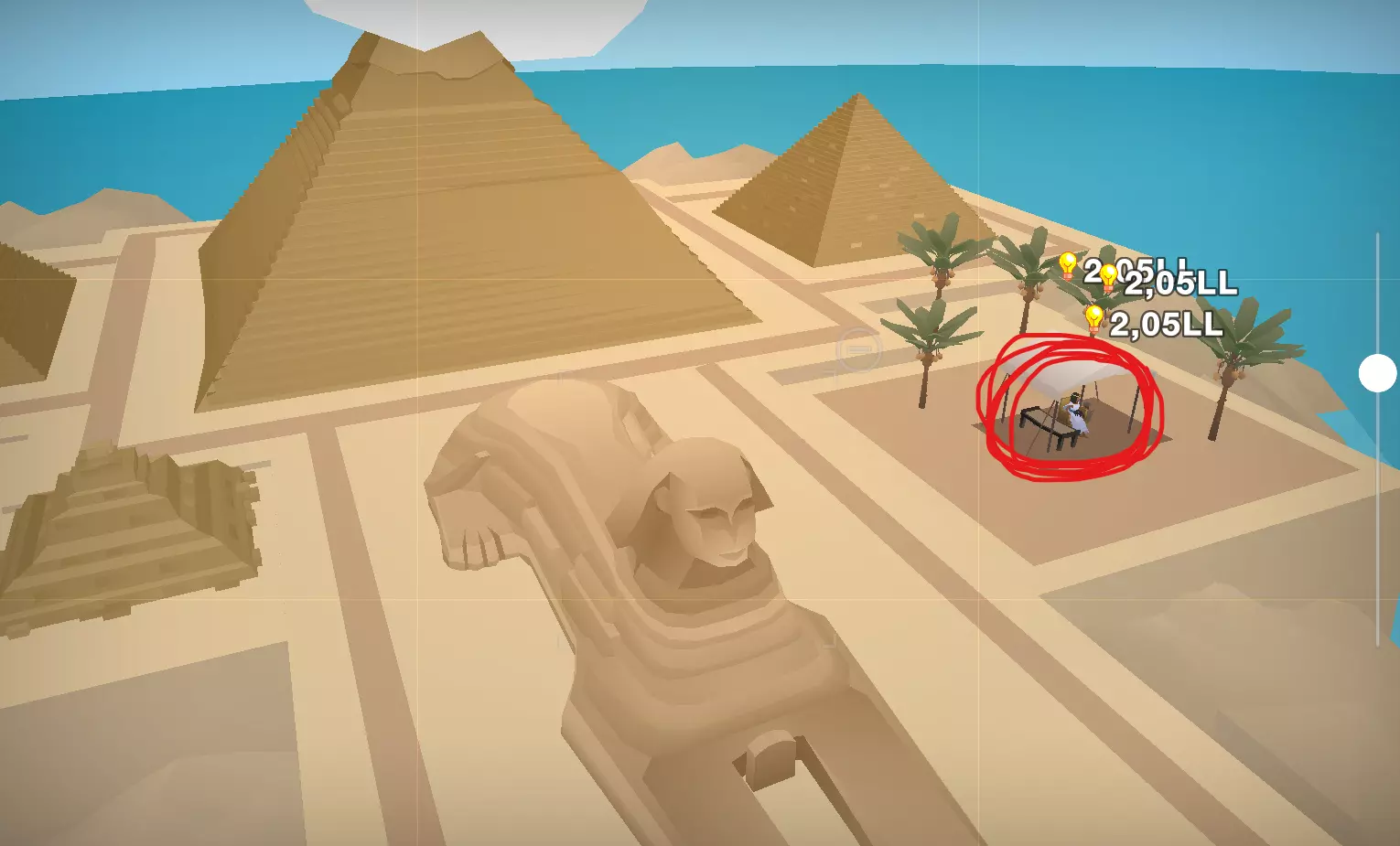 古墓挖掘者 使用地图功能可更轻松地导航。找到狮身人面像后方金字塔后面的帐篷,点击帐篷并环顾法老陵墓。