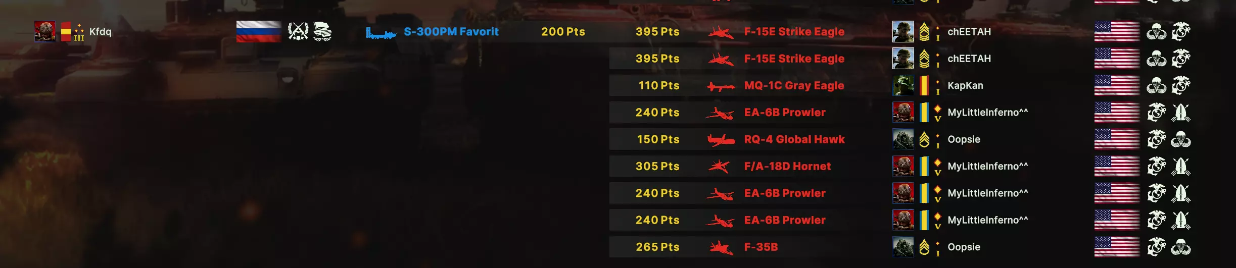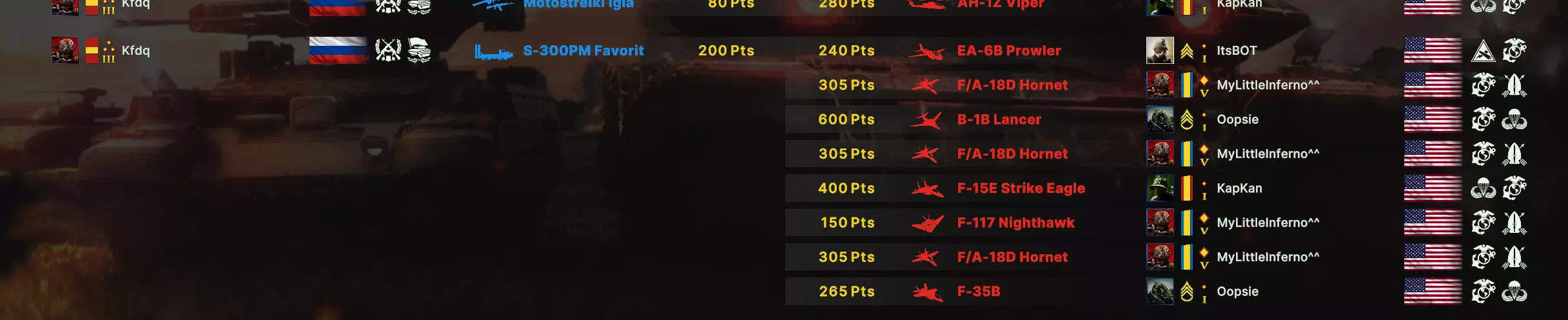 MrLooney "Ну ставить столько ПВО 1 человеку это сильно резать себе инкам. Это скорее для командной игры, когда остальная тима вообще не ставит ПВО. Ну и думаю тебе просто хорошие самолетники не попадались, они просто на F-35 подлетят на низких в стелсе и аккурат все ПВО одним сбросом высекут. Ну и я не знаю тестил ли ты дальнее ПВО в лесах, но я редакторе вообще не заметил разницы стоит оно в поле или глубоком лесу.." Ответ: Насчёт того, что инкам падает сильно - это конечно не совсем так, стоимость такого хаба - считай 3 танка и развед машинка, снижается, да, но не совсем критично, для поддержки союзников ресурсов вполне хватает, чтобы держать направление 1х1 против другого игрока тоже. Тем более, что можно договориться с союзниками и разделить нагрузку, а ещё лучше - собраться в 2 группы по 2 и сделать 2 хаба, так как закрыть более чем пол карты не всегда представляется возможным. Насчёт хороших самолётников, попадались вполне сильные, и, да, они пытаются зайти между зданий или с леса. В игре могут вас переиграть, могут даже просто не сойтись звёды, или кубики выпадут на 1 и вам не повезёт, сегодня была игра когда мой с300 вообще не хотел сводиться на, кружаший над ним в 3км, штурмовик и тот его-таки доканал. Но грамотная расстановка не позволит даже успешному налёту - развалить всю сеть. Вы потеряете 1-2 установки, но сеть сможет работать дальше. По поводу леса, попробую провести больше тестов, но мне эмпирически показалось, что лучше всего больше пво сводится - когда перед ним в сторону противника как можно больше свободного пространства. Mr.Looney "Вообщем поиграл я еще немного, добрался до игр 1900 ело и скажу, что данный найд абсолютно бесполезен. Такой ПВО хаб во 1-х не защитит танки от налета кластерников, для этого ПВО нужно ставить близко к фронту. Во 2-х такой хаб разберут 1-м Ф-35 на штормбрейкерах (там 8 бомб, можно спокойно 4 установки за раз вырезать), либо су 30см на несбиваемых ракетах, там тоже 4 установки за раз убиваешь. Но самое главное - чем дальше ПВО от фронта, тем бесполезнее оно..." Большое спасибо за комментарий, я согласен с большинством, что в нём написано, кроме фразы "гайд абсолютно бесполезен." Объясню почему: Этот гайд не аксиома "как надо играть на пво", а определённая вариация, которая преследует определенные задачи, описанные выше. Они расставлены по старшинству -> сбивать самолёты это последняя и наименее важная задача при игре этой тактикой. Напоминаю, что игра командная и она позволяет взаимодействовать вместе. Например: не далее как сегодня, мы играли пятеркой, где был ПВО хаб (его правда делал не я, осваиваю танчики) и остальные игроки действовали примерно по схеме, описанной вами, что позволило эффективно законтрить США и налёты их прр. Уровень партии был 1800-1900. Насчёт Ф35 и су30см я согласен, но на одну партию, где у гения авиации получается сделать успешный налёт и хотя бы что-то повредить - приходится 10-15, где не получается. Ситуации где за один налёт, или налёт одним самолётом удавалось выбить весь хаб (даже большую его часть) не было ни разу. Насчёт защиты от штурмовых бомб на кластерах я абсолютно согласен, но защита от них и не входит в задачи хаба (косвенно входит с минимальным приоритетом), да и по факту их сбивает лучше пво среднего и малого действия, тк они всё время на низах. К сожалению, из-за особенностей нашей пати, в последнее время я вынужд