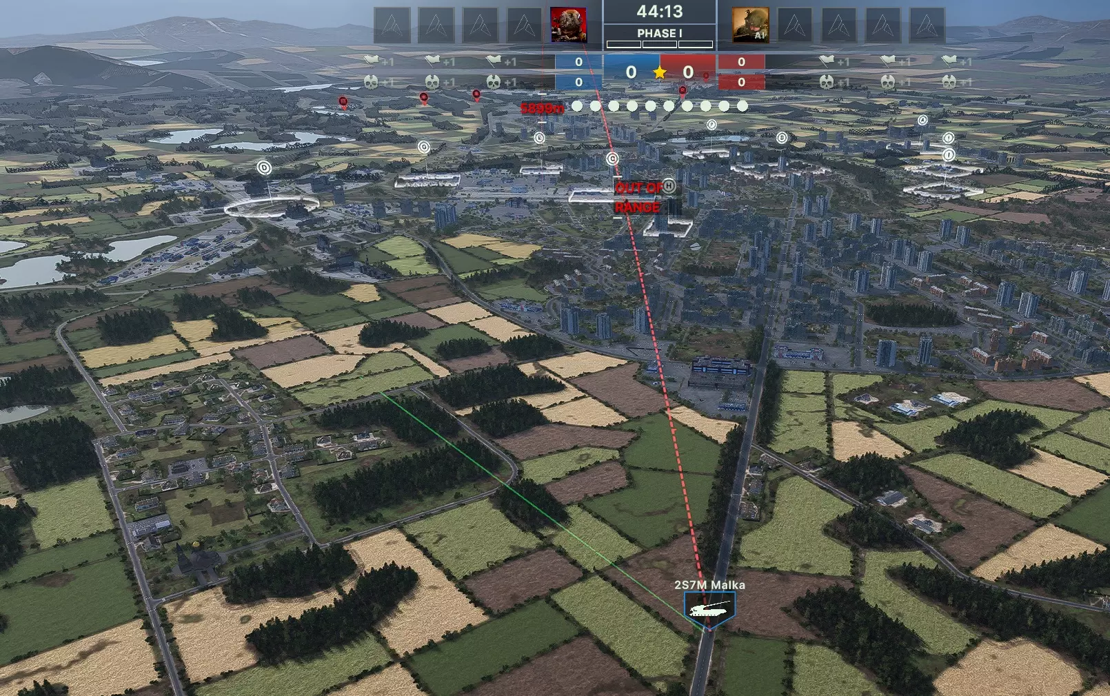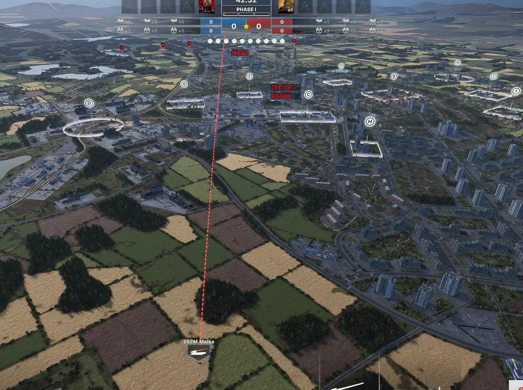 大概是这样,之后需要估算到LBS和敌方火炮潜在位置的距离。由于游戏至今没有合适的瞄准线(尽管我在所有测试阶段都提过这个问题),所以可以通过手动瞄准(T键)自己的火炮(任意火炮均可)来实现这一点。