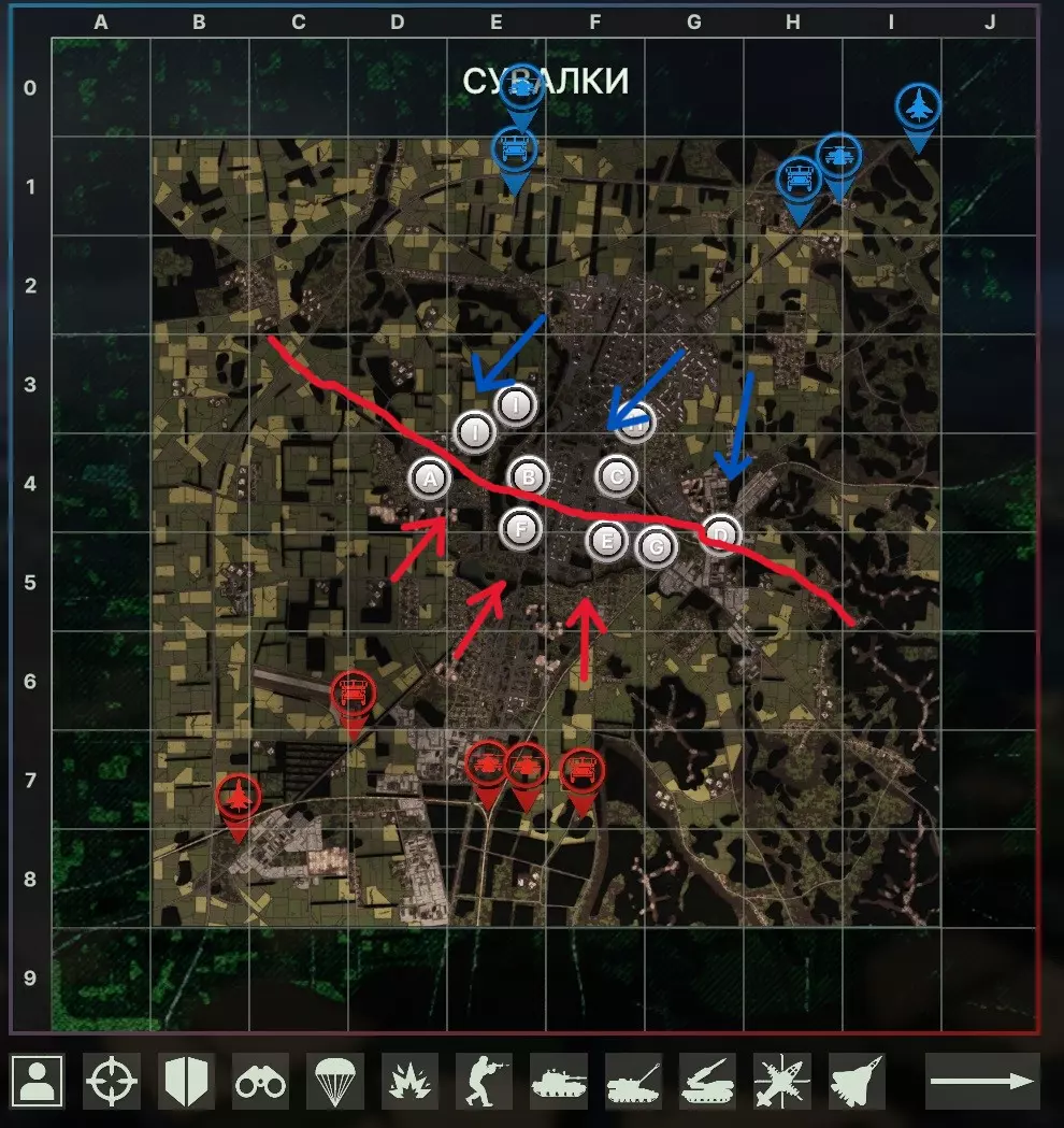 通过这些图标(在游戏中鼠标悬停即可查看说明),我们可以了解到该装置:1. 配备雷达。2. 具备对导弹和飞机的射击能力。3. 无法在移动时瞄准和射击。4. 若直升机狡猾地靠近,将无法对其生效。因此,我建议评估你打算加入卡组的每个防空单位,以了解其能力并知晓弱点。 防空节点的目标与任务 在做任何事情之前,最主要的问题是:为什么要做?游戏中的防空系统(ПВО)有多种使用方式。有人会将其与地面战场支援(ЛБС)紧密配合,仅在敌方攻击机接近时才按需启用雷达;有人则倾向于凭运气作战,几乎不使用大型防空武器,仅依靠“小型”防空直升机武器;还有部分玩家会成功运用战斗机来对抗敌方空中力量。总体目标只有一个——不让敌方取得完全的空中优势。实际上,我们的基地或节点防空方案(具体名称可根据喜好选择)应承担以下任务:1) 有效拦截防空导弹,并最好能吸引敌方反雷达(SEAD)航空兵对自身发起攻击;2) 在尽可能大的战区范围内为敌方侦察无人机设立禁飞区;3) 发挥导弹防御(PRO)功能,阻止敌方发射弹道导弹。4) 生存 5) 击落敌方飞机 好了,我们已有目标,任务也已明确——接下来开始行动 构建防空阵地 呼,终于进入正题了。需要明白的是,一套好的【PVO(被动防御系统)】大约会花费你1000-1300点,而且很明显不能只从它开始建设。无论如何,你都需要进行侦察,并且至少在某个方向上用最基础的兵力进行防御,所以组织过程会花费一些时间。在第一阶段结束前,能够建造并启动【枢纽】的运作就已经相当不错了。 1) 部署位置。规划你的防空阵地时,首先要做的是选择地点。对我们构成主要威胁的甚至不是飞机,而更可能是敌方的导弹和火炮,因此重要的是环顾地图,大致了解主要战线将在哪里展开。