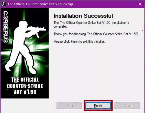 安装完成后,点击“完成”按钮。这样,C3RBERUS机器人就已安装到《反恐精英1.6》中。 机器人配置教程 正如标题所示,在本节中你将了解如何根据自己的喜好配置机器人。