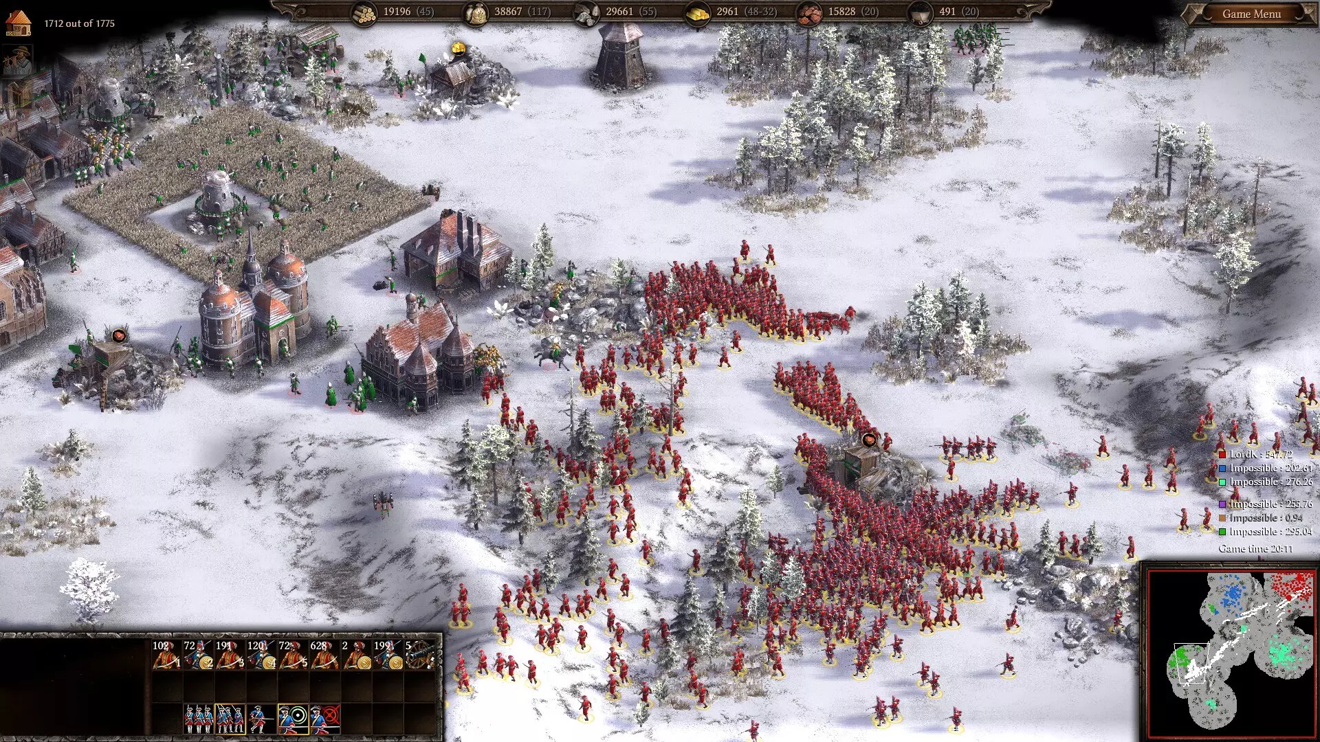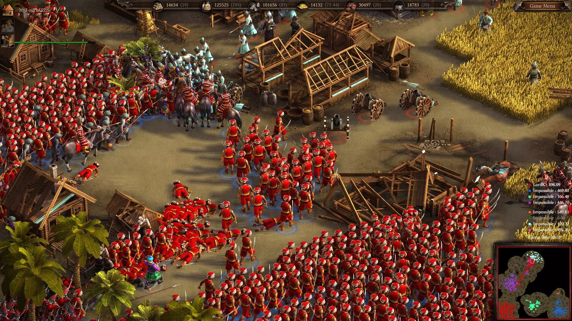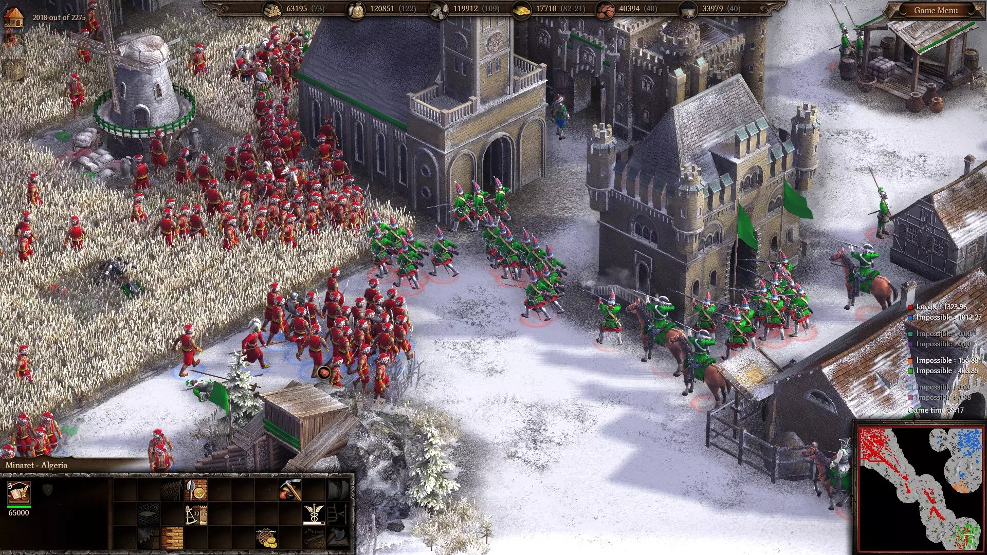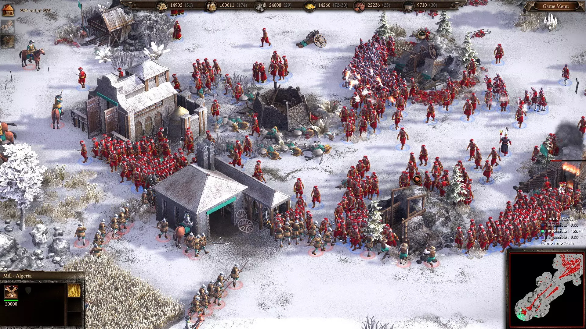 准备掠夺!阿尔及利亚军队向一座俄罗斯基地发起进攻。像往常一样,可牺牲的轻步兵率先冲锋吸引火力,随后是马穆鲁克骑兵和雇佣兵。 游戏后期(18世纪末期)