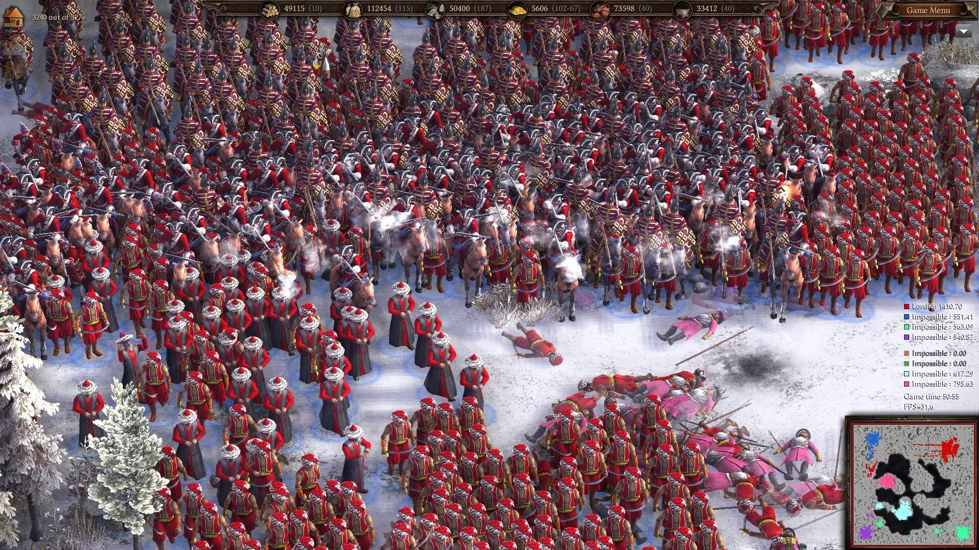 如何应对后期国家,阿尔及利亚式打法:奥斯曼帝国的长枪兵在10分钟标记前蜂拥而至,突袭巴伐利亚基地。 然而,一旦度过最初的15-20分钟,奥斯曼长枪兵的实力就会大幅下降。部分原因是随着其他单位升级赶上,他们在近战中的优势逐渐丧失,但主要原因是他们缺乏子弹护甲且训练时间较长,因此即使面对中等规模的火枪手部队也表现糟糕: 击杀所需射击次数(全升级) 伤害:16 20 22 25 30 35 40 46 51 56 轻步兵:4 3 3 3 2 2 2 2 2 1 奥斯曼长枪兵:6 5 5 4 4 3 3 2 2 2 雇佣圆盾兵:10 7 6 5 4 3 3 2 2 2 17世纪长枪兵:12 8 7 6 5 4 3 3 3 2 骑兵:50 30 25 20 15 12 10 9 8 7 胸甲骑兵:150 50 38 28 19 15 12 10 9 8 这就是为什么你需要在游戏中期到来之前转用轻步兵或弓箭手。当然,他们个体实力较弱,但训练速度快得多,因此能够弥补战斗中的不断损失,而奥斯曼 pikemen 则做不到。好在你的轻步兵比大多数都要强,但这一点我们稍后再详细说。 这就是奥斯曼 pikemen 的特点:早期很强,后期却严重乏力。按一对一来说,他们也是阿尔及利亚最强大的步兵,这一点很能说明该派系的情况。不要在他们的强势期之外依赖他们,这样他们就能很好地为你效力。