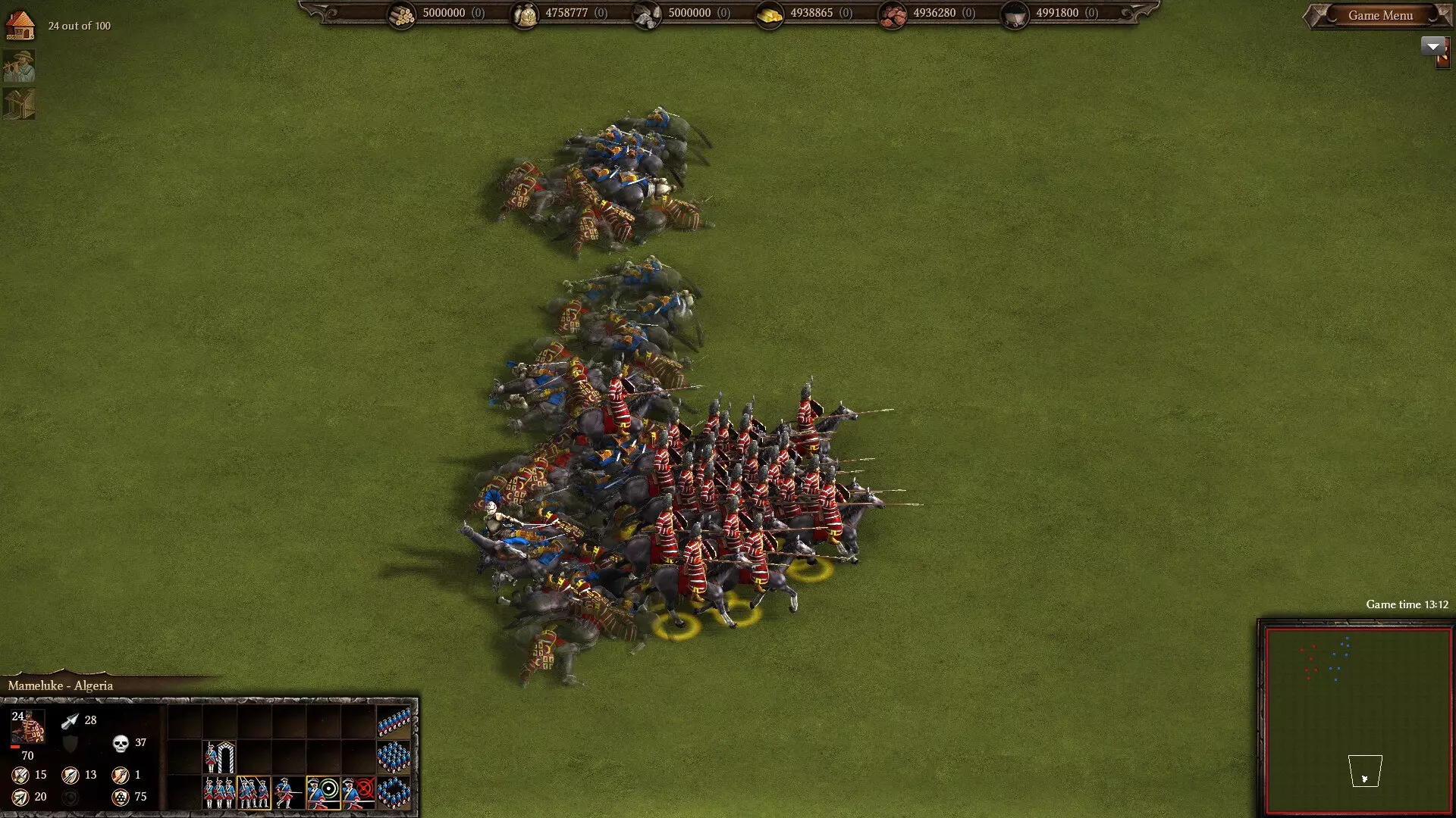 骑兵突击:马穆鲁克和雇佣龙骑兵投入战斗。 在游戏初期,马穆鲁克的作用不大,仅能为军队增加一些额外生命值;其高昂的升级成本意味着有限的资源最好投入到步兵、炮兵和雇佣兵上,这些单位的火力和数量通常比马穆鲁克的长矛更有用。一旦这些都安排妥当,并且你有足够的资金进行昂贵的升级和建造更多马厩(目标是2到3个),马穆鲁克就会变得强大许多。与雇佣龙骑兵搭配,它们可以组成一支强大且机动的中期突击力量,用于攻击敌人抵抗最顽强的据点。注意不要让它们承受过多火枪或加农炮的攻击,这部分任务交给轻步兵即可。总之,马穆鲁克是不错的近战骑兵单位,但仅此而已。它们无法取代步兵和持枪雇佣兵作为你军队的核心,但升级后,它们能提供额外的冲击力,帮助你突破那些会给你的剑兵大军带来麻烦的较强中期军队。而且,你的马厩也造不出别的单位,所以就习惯让它们成为你军队中的近战精英吧。