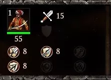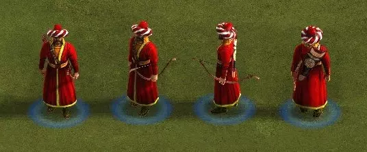 花费:20食物,2木材,1黄金 训练时间:1.5秒 射程:15 装填速度:2.34秒 【优势】 - 游戏中最适合大量生产的远程单位 - 生产和升级成本低 - 训练速度极快 - 可点燃建筑 - 擅长消灭静止或密集的敌人 【劣势】 - 对抗快速、分散或重甲近战部队时几乎无用 - 属性数值低下 - 造成弓箭伤害 - 精准度差 - 可能造成友军伤害 - 无近战攻击 - 人口效率低 阿尔及利亚唯一的本土远程单位遗憾地表现并不出色。这个名称简单、戴着薄荷色帽子的弓箭手就像是远程单位中的轻步兵,用其无可比拟的量产潜力弥补了自身属性数值的低下。如果他不使用弓箭的话,会是一个强大的单位,但就目前而言,他固有的弓箭手不准确性,再加上友军伤害以及需要保护他免受所有近战威胁的需求,使他成为一个非常看场合的单位,只对其他远程部队和密集敌人有用,除此之外就没什么用了。