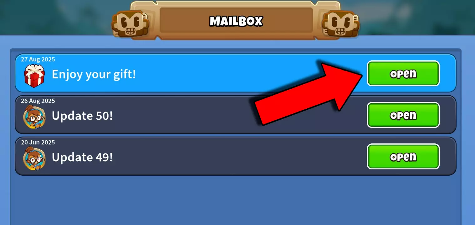 游戏内免费代码(促销代码)目前可使用 介绍 你好! 忍者猕猴桃公司会不时发放可在游戏中激活的免费礼品代码。 这些代码会为你的账户添加各种奖励:皮肤、即时猴子、放置特效、能力、猴子钱等。 免费代码 代码:Stockingstuffer,奖励:300猴子钱 代码:Yeehaww,奖励:两只0-0-2亡命之徒即时猴子 代码:Bloooons,奖励:200猴子钱 如何激活代码 1:进入主菜单,点击邮箱图标