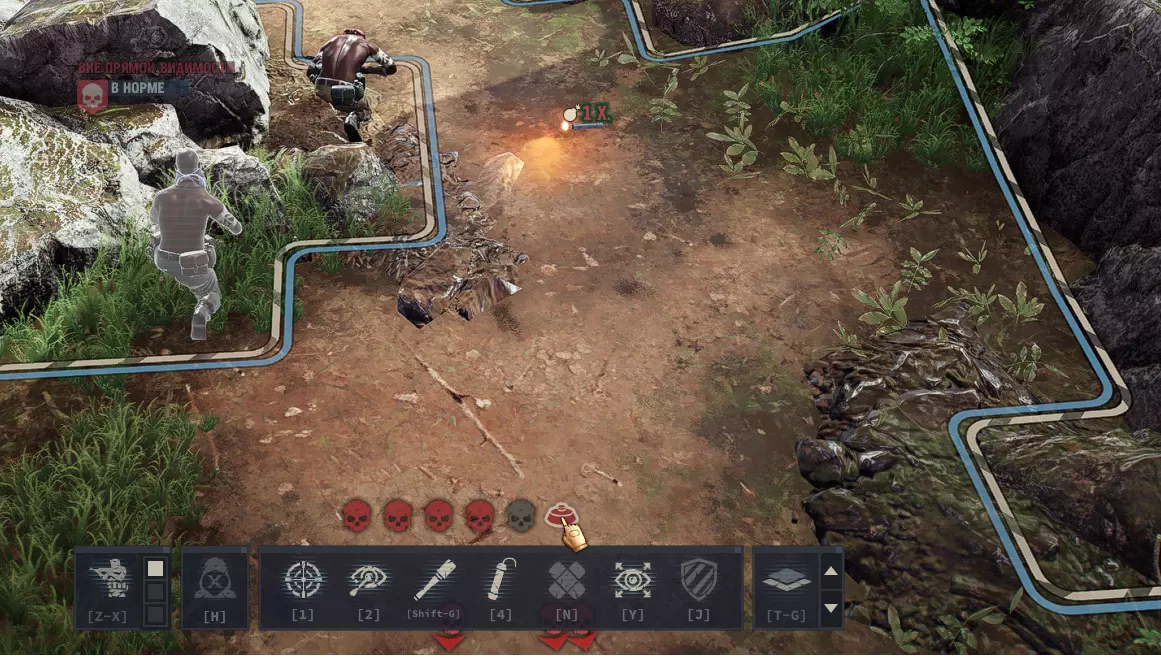 接下来我们介绍【动态引爆】。 我们仍然可以射击它。 在开放空间中使用它进行“采矿”毫无意义,敌人有70%的概率会躲开。 最佳使用方式:瞄准门或窗户进行充能。 你也可以直接向敌人投掷它。 你需要将敌人站立的单元格纳入爆炸范围,最好让两者中心对齐。这样做的话,你无需为这枚炸弹额外消耗行动点,成功率高达80%。