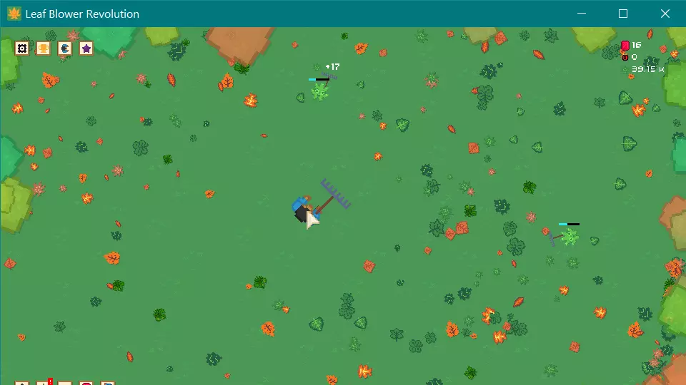 《吹叶机革命》非官方指南 从清理草坪上的普通落叶,到使用喷气发动机将树叶吹向敌人以获取神圣奖励,本指南能帮助你成为史上最伟大的庭院清洁工。 更新:2022年10月22日:本指南已有约两年历史,其中细节与游戏当前状态不符,且我无意更新本指南,也不再打算续写。 第一个庭院 正值秋季,落叶纷飞,你的伴侣让你打扫庭院,这便是你迈向伟大的征程的开始,现在,让我们开始清理那些讨厌的落叶吧。移动你的鼠标,一段时间后你就能获得第一个升级(忽略BLC,这是教程后续部分的内容)
