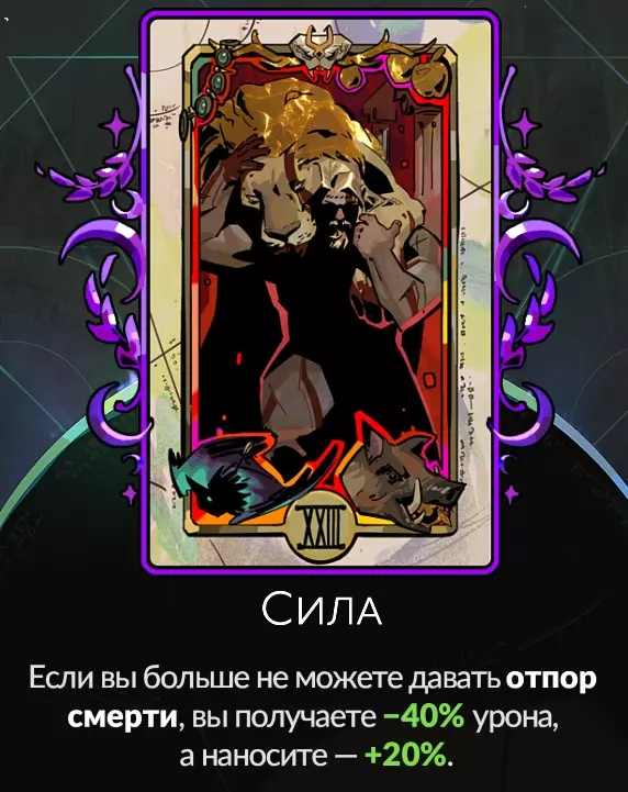 【力量】 【力量】卡牌能为我们提供20%的伤害增益,该增益不仅作用于普通攻击和技能,还适用于我们造成的所有伤害,例如持续伤害类的腐蚀效果,同时还能使我们受到的伤害降低40%。但为了让这张卡牌生效,我们需要完全放弃任何形式的死亡后效果,也就是放弃雅典娜的额外恩赐。死亡抵抗,来自图拉,来自传说中的混沌恩赐,以及我之前提到的两个纪念品:【幸运牙齿】和【刻字徽章】。乍一看这似乎不那么划算,因为按照最基本的计算,如果算上普通的100点生命值和3次死亡抵抗,我们本应拥有220点生命值,但实际上却只有140点,但事情并非这么简单。你不必是一位非常厉害的玩家才能使用这张卡牌,别让游戏误导你。从描述上看,你可能会觉得这是一张只有当你已经非常擅长这款游戏且不需要额外防护时才会使用的卡牌,但事实并非如此,因为【力量】本身已经具备非常不错的额外防护。40%的伤害抗性非常高,而且我们有很多潜在的治疗手段,比如【血之子】这张卡牌,它能在我们通过每个区域后提供少量但持续的生命值回复。除此之外,我们的所有伤害都会增加20%,不仅仅是普通攻击和技能,而是全部伤害,包括像灼伤或毒液这类异常状态造成的伤害,这提升幅度很大。很多玩家如果开始使用力量属性,可能会感觉更顺手。我一开始也是为了测试才使用力量属性的,我不太擅长这款游戏,我非常喜欢坦克式的输出玩法,而不是闪避流,用了力量属性后,玩起来舒服多了。你也试试,一定要多跑几次图,90%的情况下你会喜欢这张地图,而且你会感觉到不同,发现自己并不需要死亡抗性。由于我们放弃使用“死亡”机制,因此也无需再使用“幸运骰子”或徽章,这让我们能够在首领战中使用所谓的“帮派”,这是个非常不错的纪念品。我开始用“该死的清单”来代替徽章,只需在所谓的海洋区域装备一次,就能在接下来的三个区域中直接跳过房间。此外,我们始终可以使用【戈尔工护符】来召唤雅典娜,并从她那里获得额外的恩赐,包括在地下世界中。