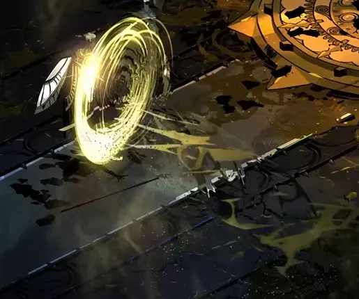 【 Faz Faz 片段】 第二阶段 说实话,在我看来没有第一阶段难,因为这家伙的投射物都有明显的前摇和清晰的轨迹,所以很难将其视为一个有威胁的敌人。 然后他会进入狂暴状态,接着释放领域展开(顺便说一句,这是第五万个玩这个梗的人了),伴随着齿轮转动的声音倒数,发动一个看起来非常吓人的攻击。不过没什么大不了的,我们在开始时就有机会进行免费攻击,而且可以冲刺躲避,完全不用担心。 这只是赫卡忒十字火焰环的加强版。在整个战斗中,克洛诺斯不会主动追击你,所以优先确保平台跳跃的准确性。向金色尖刺墙冲刺一次,就能让你处于一个舒适的位置,远离下一个收缩的圆环(见下图)。