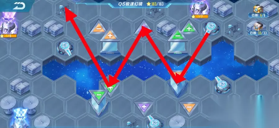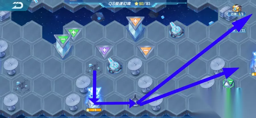 一旦成功通关后,接下来是打BUFF关。有BUFF的玩家可以先打三星的。我自己的技术水平有限,所以我的策略是先打通道路。接下来就是跑迷雾了。成功通过迷雾后,我们会来到星星火车站。这两关的难度相对较低,相信大家都能轻松应对。