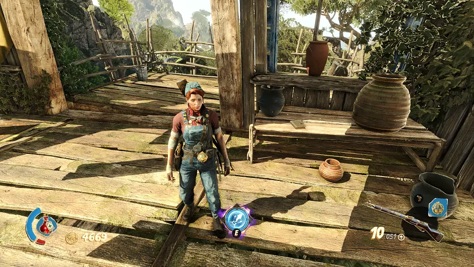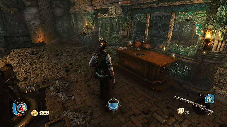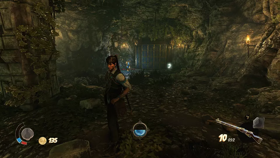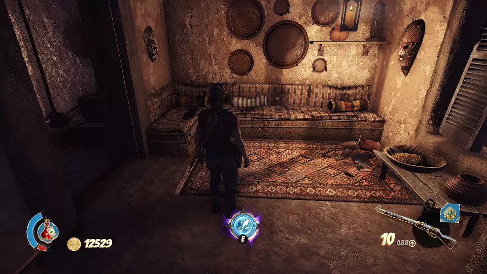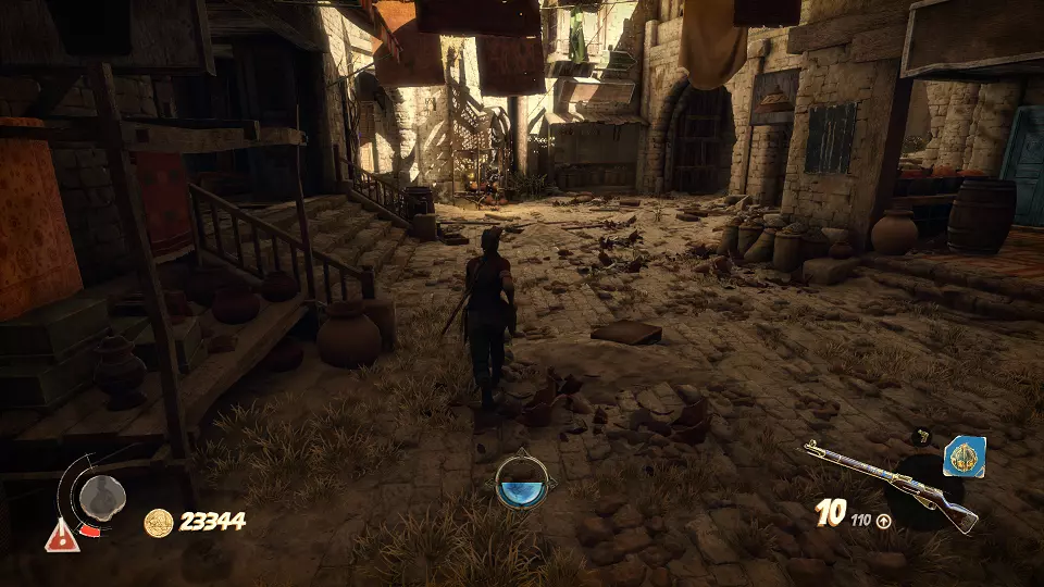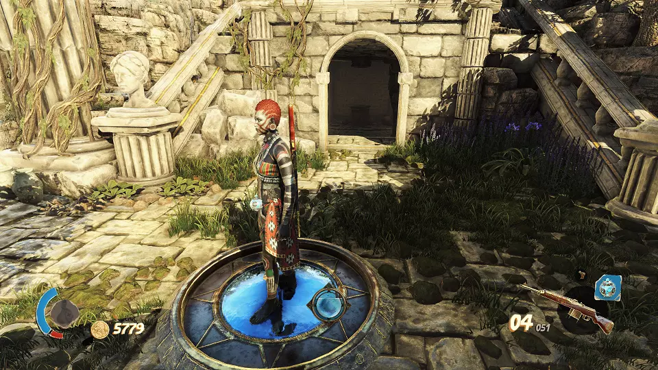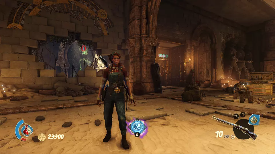 陶罐(2/4) 古老雕像(2/4) 从这个小房子右侧射击陶罐,以及那个能打开通往大房间大门的开关,在大房间尽头可以找到雕像。