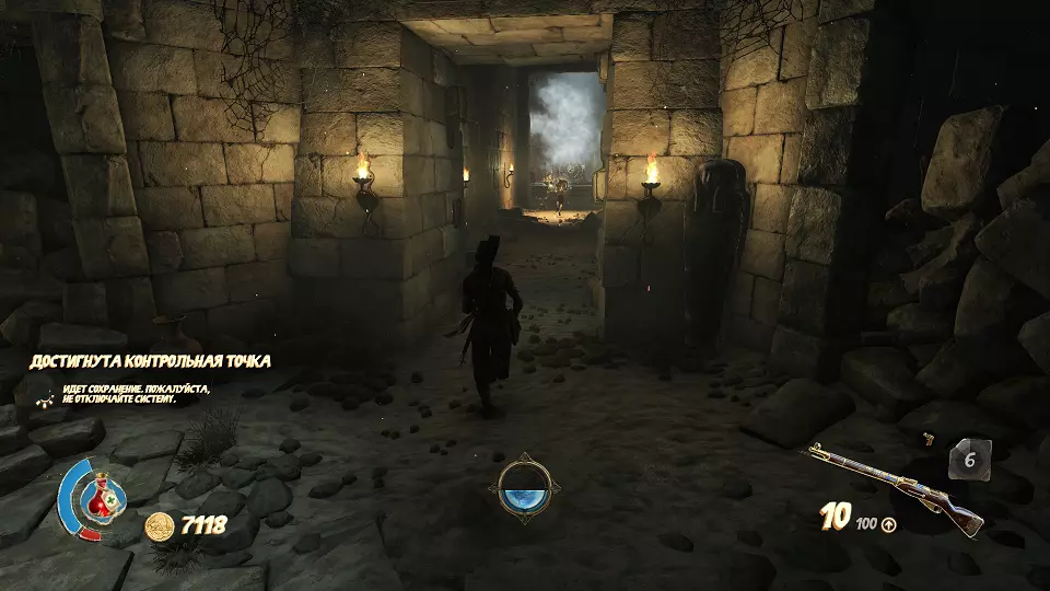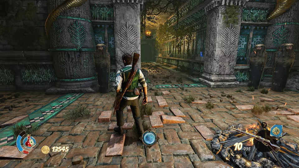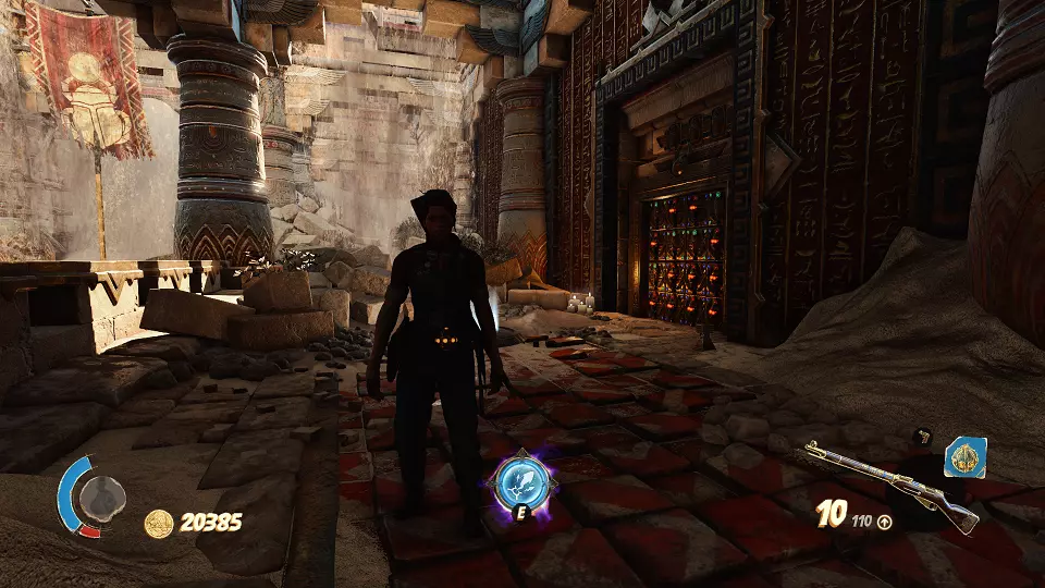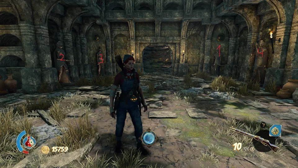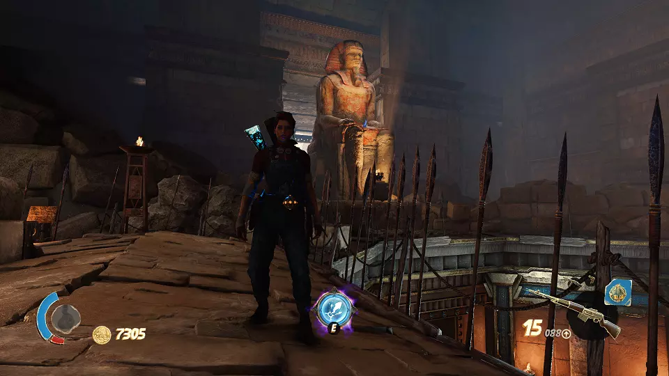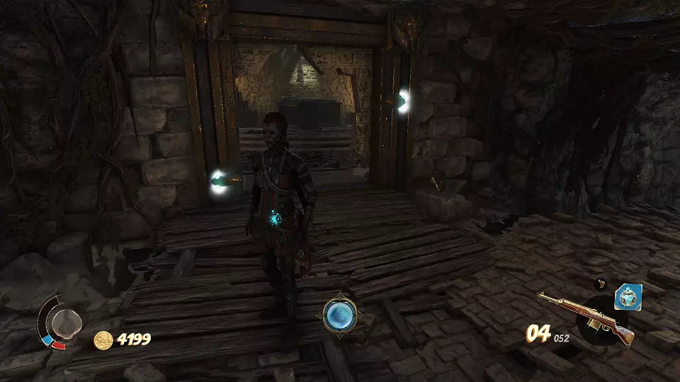 遗物(6/6) 在有许多木乃伊的房间里,你需要站在几块面板上并射击开关。最终会打开通往遗物的门。