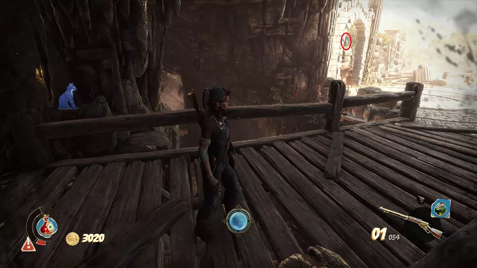 猫咪雕像(4/6) 骨灰瓮(2/4) 在洞穴中向上走,穿过桥梁。在那里你会找到两个物品。