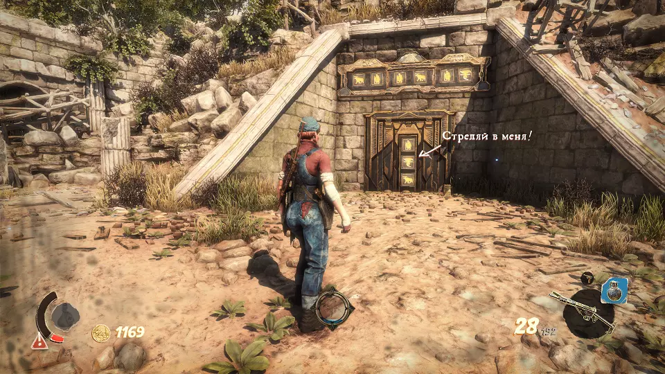 打开门,射击远处的最后一个 urn(骨灰坛)。(进度:4/4)