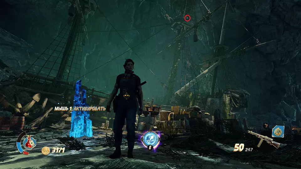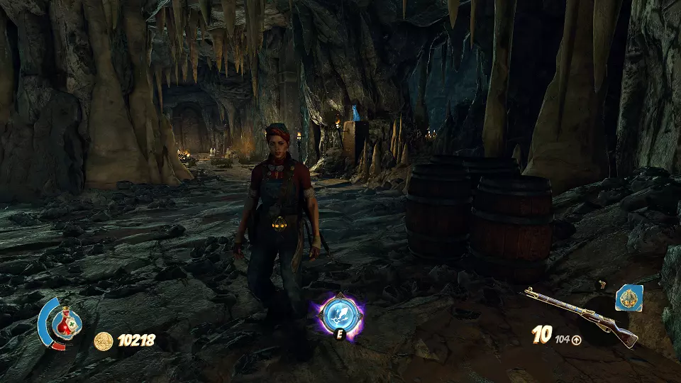 遗物(5/6) 现在你需要在这个洞穴中一直下到最底部。最终你会找到为桥上的水晶充能的方法,并打开门,门后就是遗物。